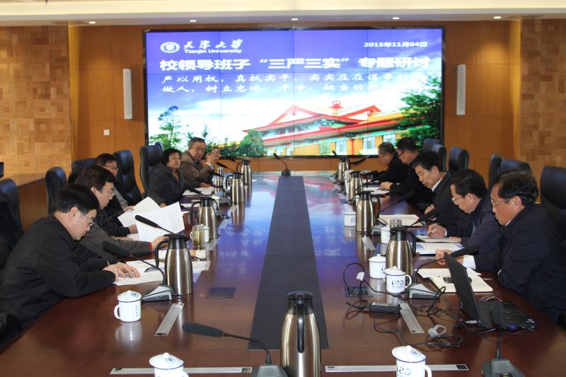 研讨中,校领导班子成员认真学习了十八届五中全会精神,《中国共产党廉洁自律准则》、《中国共产党纪律处分条例》,校领导班子成员结合自身思想实际和工作情况,讲认识、谈问题、拿举措,谈对中央“严以用权”要求的深刻认识,同时从焦裕禄、杨善洲、沈浩和身边典型事迹中找差距,从周永康、薄熙来、徐才厚、令计划、苏荣和武长顺等违纪违法案件中汲取教训,相互碰撞,交流提高。并从为民用权、秉公用权、规范用权,贯彻民主集中制,一切从实际出发,真抓实干、敢于担当等四个方面进行剖析,查摆“不严不实”问题,深刻总结反思,并在此基础上,明确了下一步的努力方向,提出了如坚持和完善党委领导下的校长负责制,进一步健全党政议事决策规则,进一步坚持民主集中制,进一步落实“三重一大”制度,进一步加强制度建设、健全监督体系,进一步强化责任担当等相关工作的具体整改措施,确保专题教育取得实实在在成效。