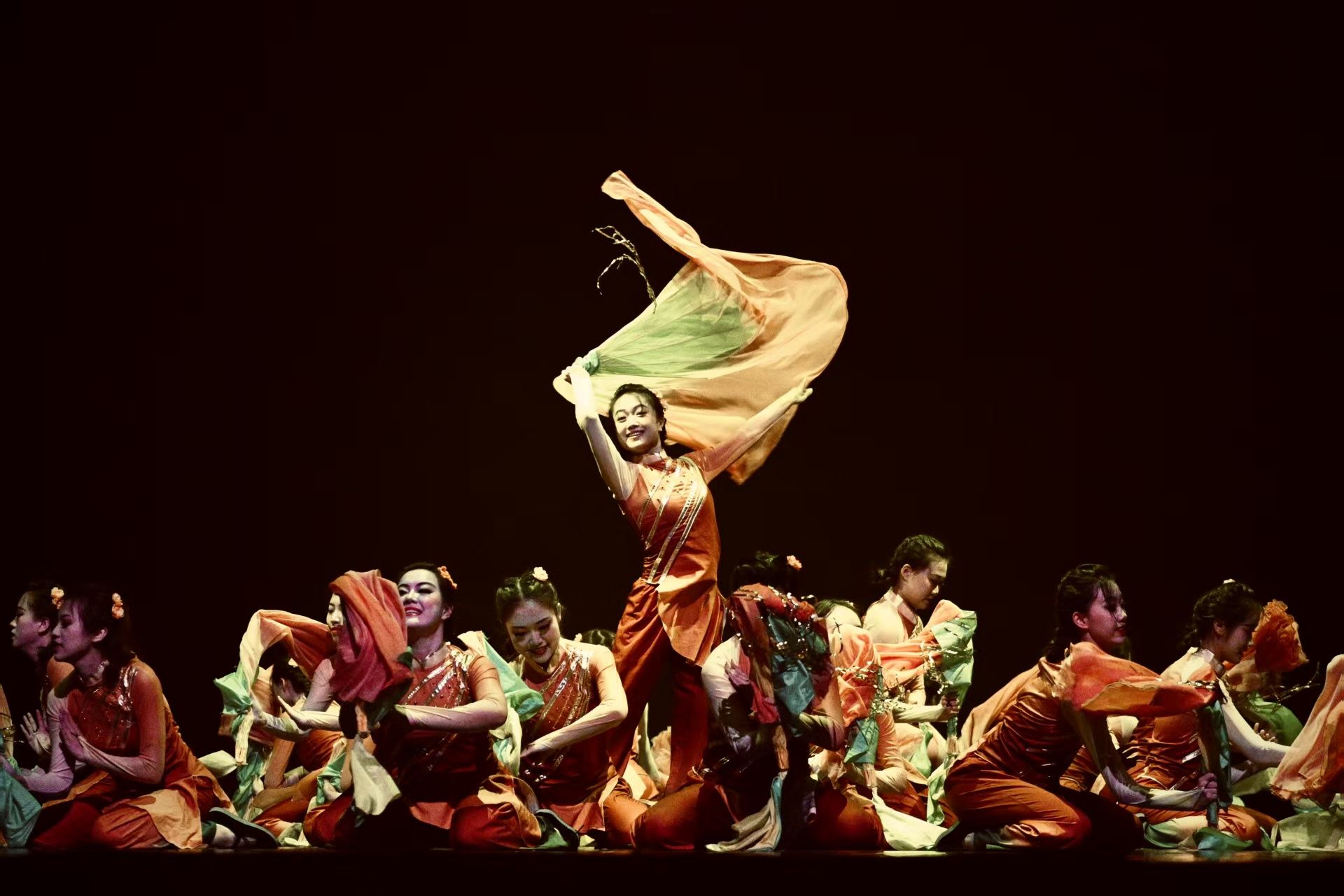 本场演出以民族民间舞拉开序幕,《冰凌花》寒霜傲骨,舞动生命倔强;《秋熟》麦浪翻涌,欢庆丰收喜悦;《云水伊人》水袖翩跹,诉说故土情深;《守月人》雪域雄姿,踏响远古回响;《永不停息的脚步》奔腾不息,舞出山河壮阔;《鼓声响起的地方》手鼓激扬,点燃西域热情。而后转入芭蕾、现代篇章,《我等你》静默守候,舞尽相思绵长;《青春下的红油伞》表现青涩年华,伞下心事摇曳;《相恋》缠绵交织,演绎心动永恒。《葛蓓莉亚》足尖轻旋,唤醒童话梦境。最后是古典舞篇章,《游园》昆韵流转,梦回姹紫嫣红;《簪花仕女》唐风绰约,一笑千年风华;《石窟·日月》飞天曼舞,再绘敦煌神韵;《唐宫夜宴》仕女嬉游,盛唐烟火人间;《莲歌越鼓行》越女采莲,轻歌水乡清韵;《蘭叙》幽兰自芳,舞动坚韧之魂。当最后一段旋律缓缓消散,全体演员在经久不息的掌声中深情谢幕。