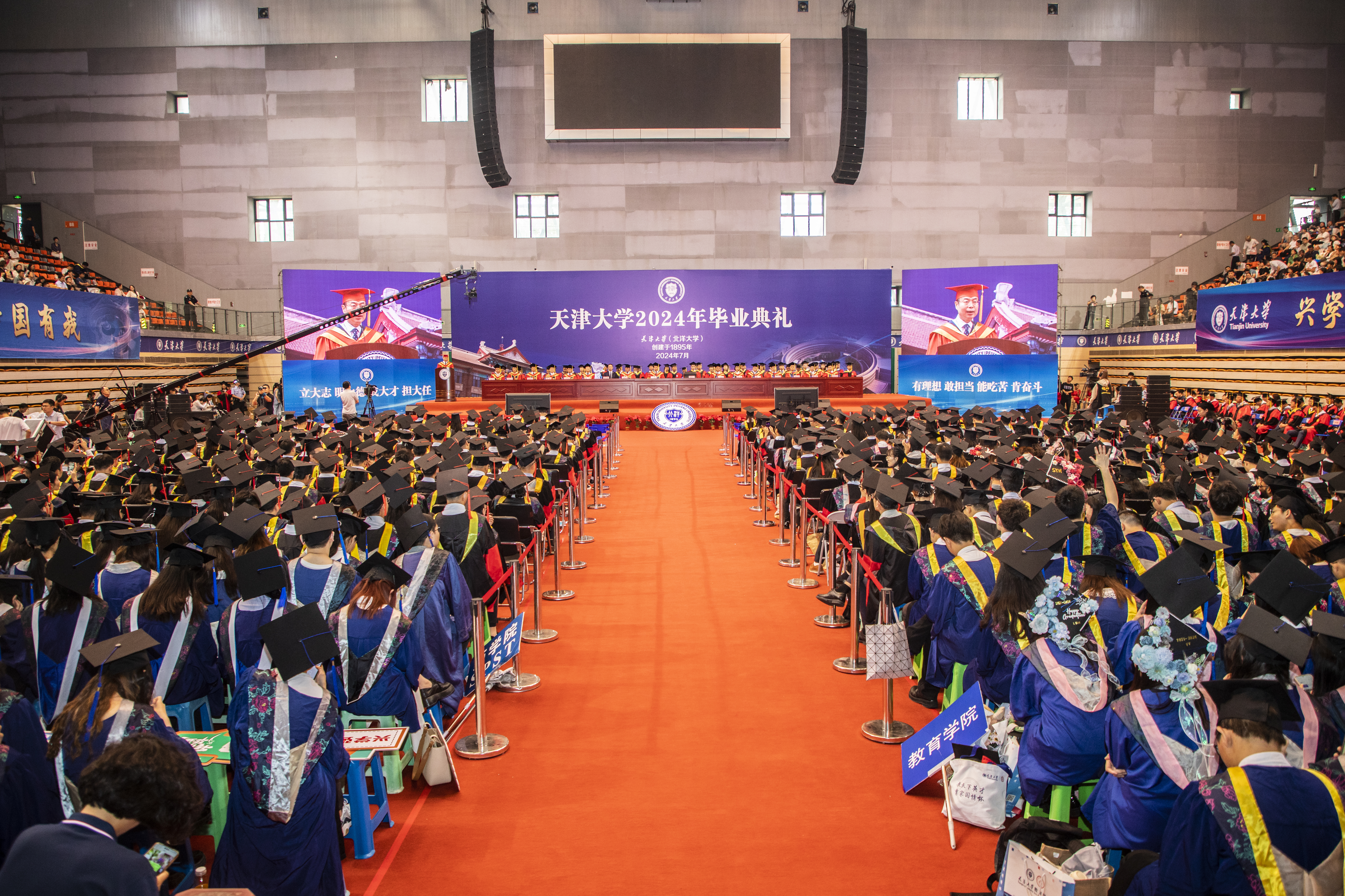 本站讯(记者 刘延俊 摄影 陈晓金)筑梦新时代,青春再出发。7月5日,天津大学2024年研究生毕业典礼在卫津路校区体育馆举行。636位博士生,3723位硕士生经学位评定委员会审议通过,顺利取得学位。校领导、校友和教师代表现场为毕业生们送上殷殷祝福和拳拳嘱托。