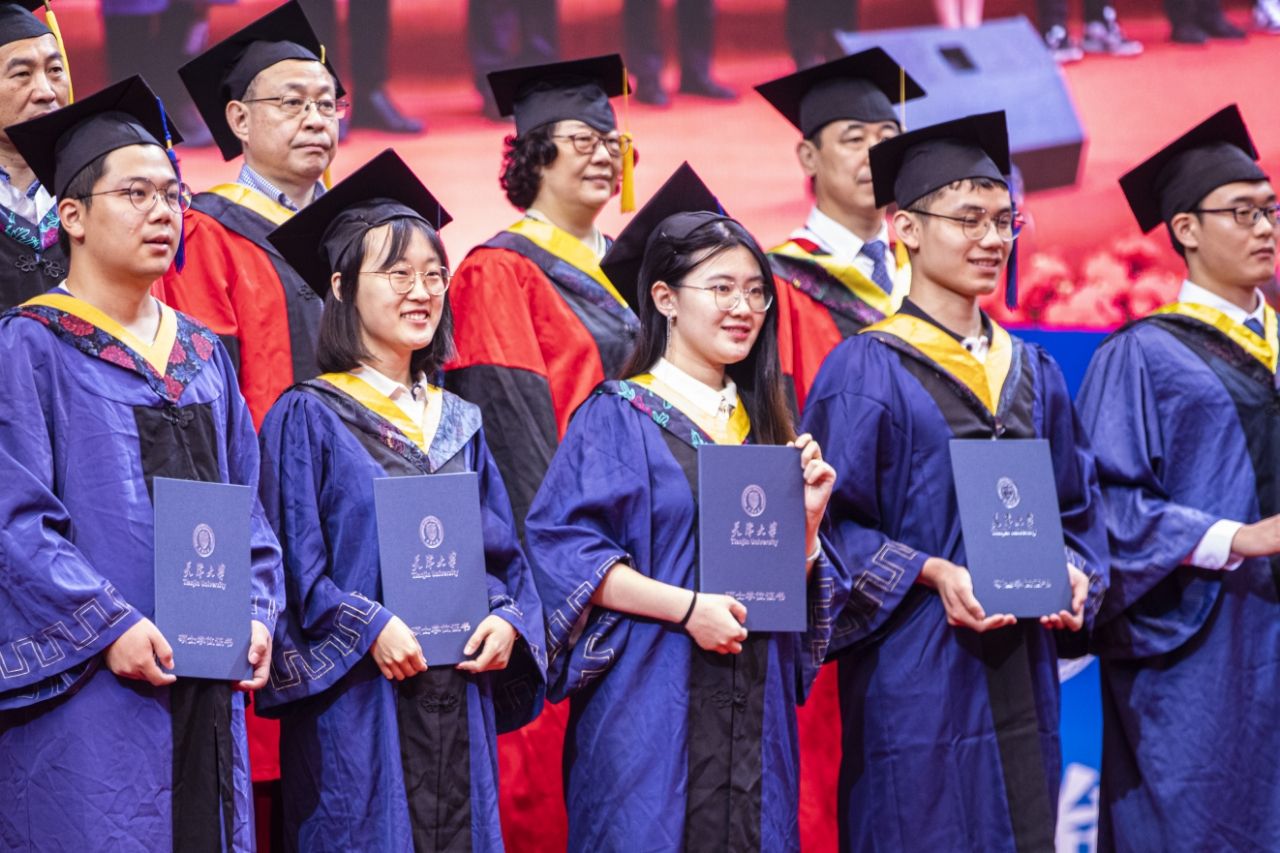 在毕业典礼上,校长金东寒以“向新而行,绘就属于你的人生蓝图”为主题,用三个“新”,激励同学们心怀梦想,向新而行,在逐梦的新征程中展现新时代天大人的青春力量!他希望同学们要坚定“新”志向,秉承天津大学“兴学强国”的崇高使命,始终胸怀国之大者,保持敢为人先的锐气和上下求索的执着,立足岗位作贡献,担当作为勇争先,做强国建设的追梦人。要聚焦“新”赛道,在这个大有可为的伟大时代,始终保持矢志创新的追求,发扬勇于探索、勇于创新的精神,不断拓展人生的边界,为推动我国经济社会高质量发展做出自己的贡献,做创新创造的奔跑者。坚守“新”底线,把个人理想融入国家富强、民族振兴、人民幸福的伟业之中,牢牢守住底线,全力追求高线,做诚实守信的天大人。拥有全球视野,为推动构建人类命运共同体贡献青春力量。