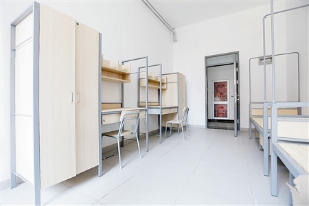 记者在学生宿舍发现,宽敞明亮的4人间、“双门禁”的安保措施、每层一个公共淋浴室和洗衣房以及活动区、直饮水系统和饮水机系统……“学生宿舍‘社区化’,确保生活安全性、便捷性、舒适性。”物业相关负责人丁正洋表示。虽然宿舍刚竣工不久,但楼内却没有刺鼻的装修气味,“我们每天至少12小时开窗通风,床板全部实木制造,为学生创造舒适的生活环境。”丁正洋表示。
