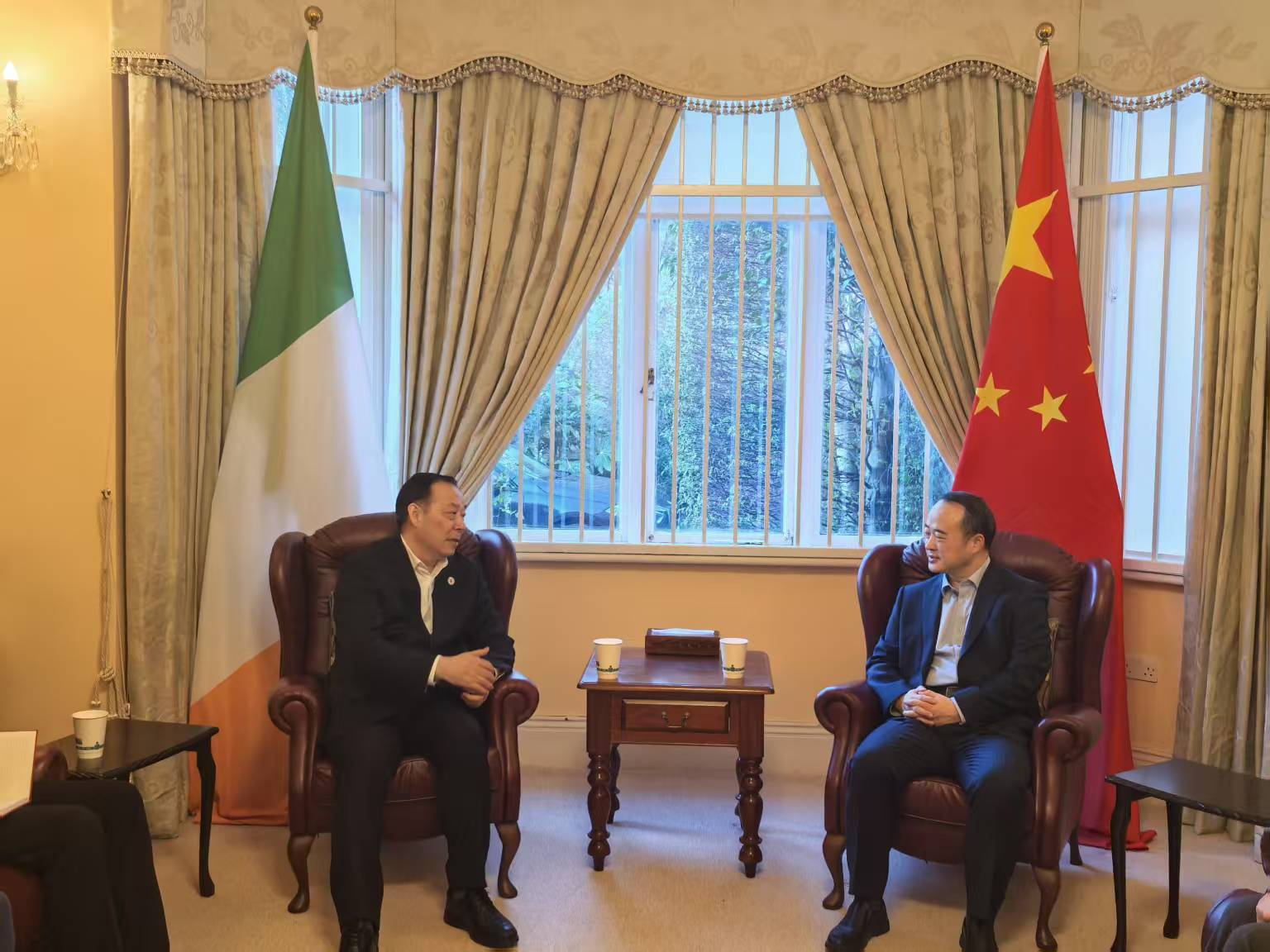 同日,杨贤金率代表团拜访中国驻爱尔兰大使馆,与大使赵希源会谈会见。杨贤金感谢大使馆对天津大学与都柏林大学长期合作给予的关心与支持,并简要介绍了天津大学近年来所取得的发展成就及此行出访爱尔兰的目标。赵希源对天津大学的快速发展表示赞赏,并对天津大学把握机会,深入推进与爱尔兰相关高校在科学研究、人才培养等领域的长期合作充分肯定,并表示大使馆将继续关心支持天津大学的发展,持续推动天津大学与爱尔兰YES项目、高校间联合培养、新利18网址登录