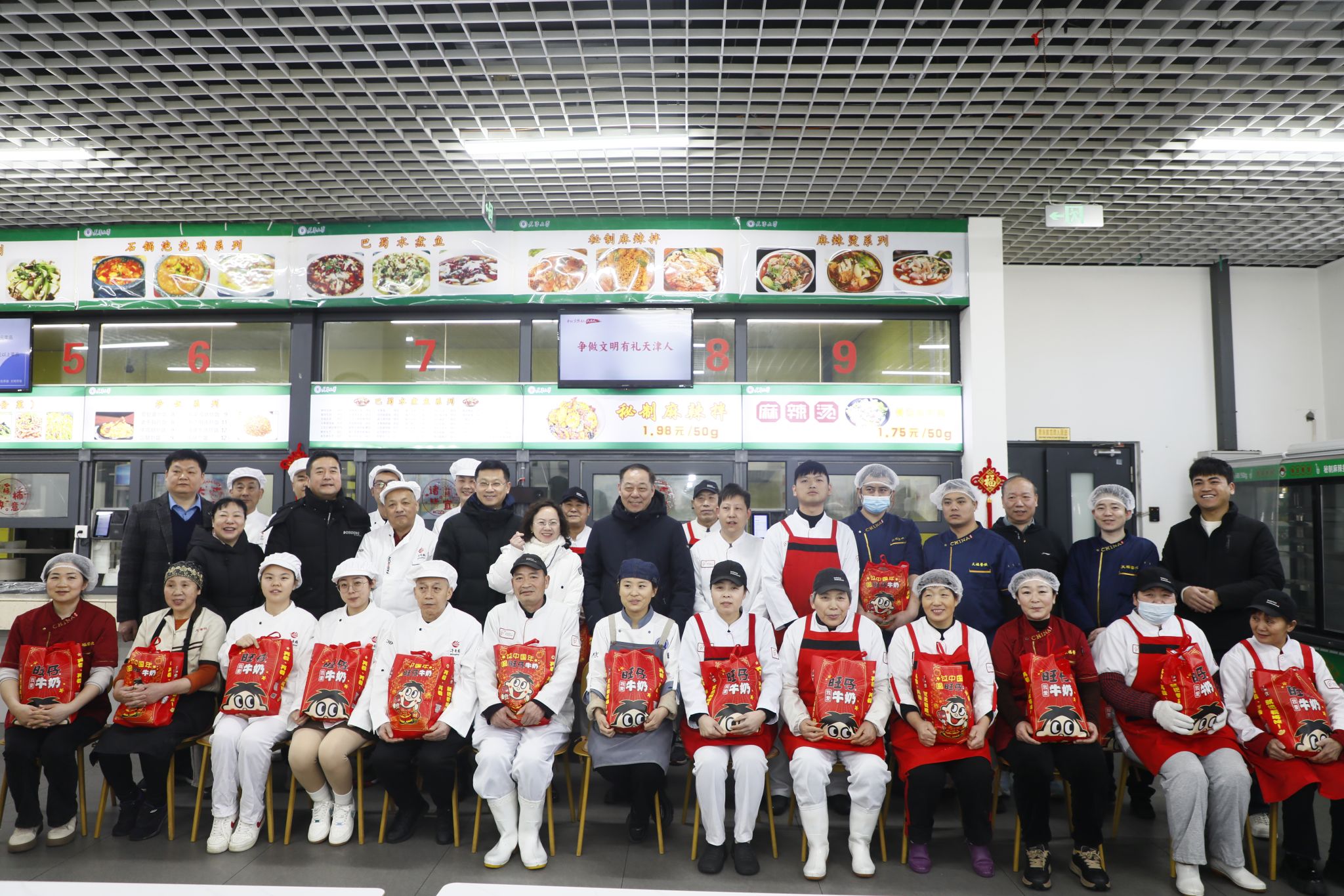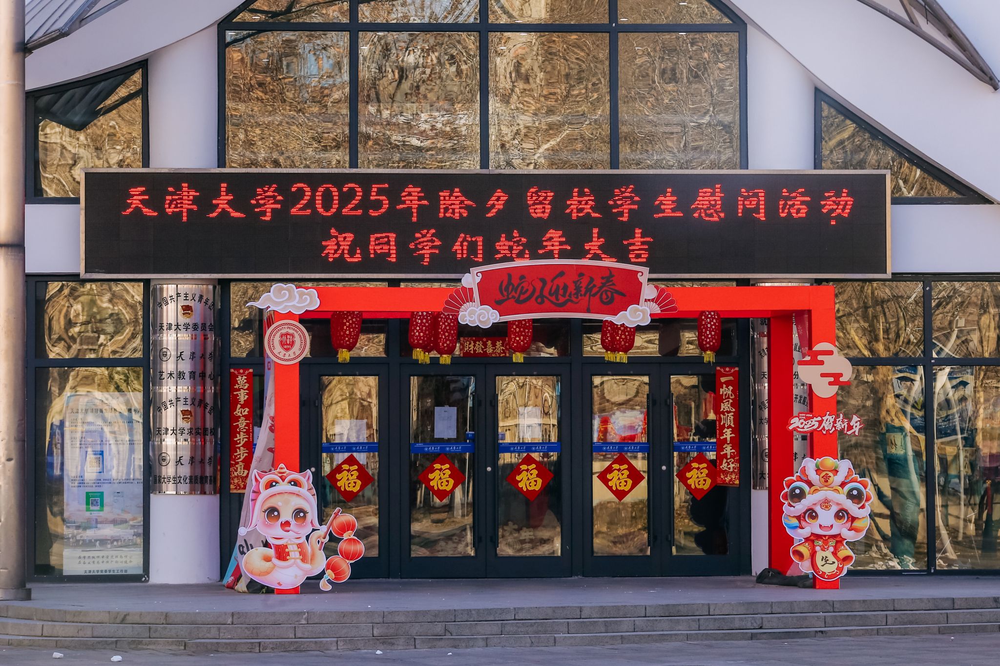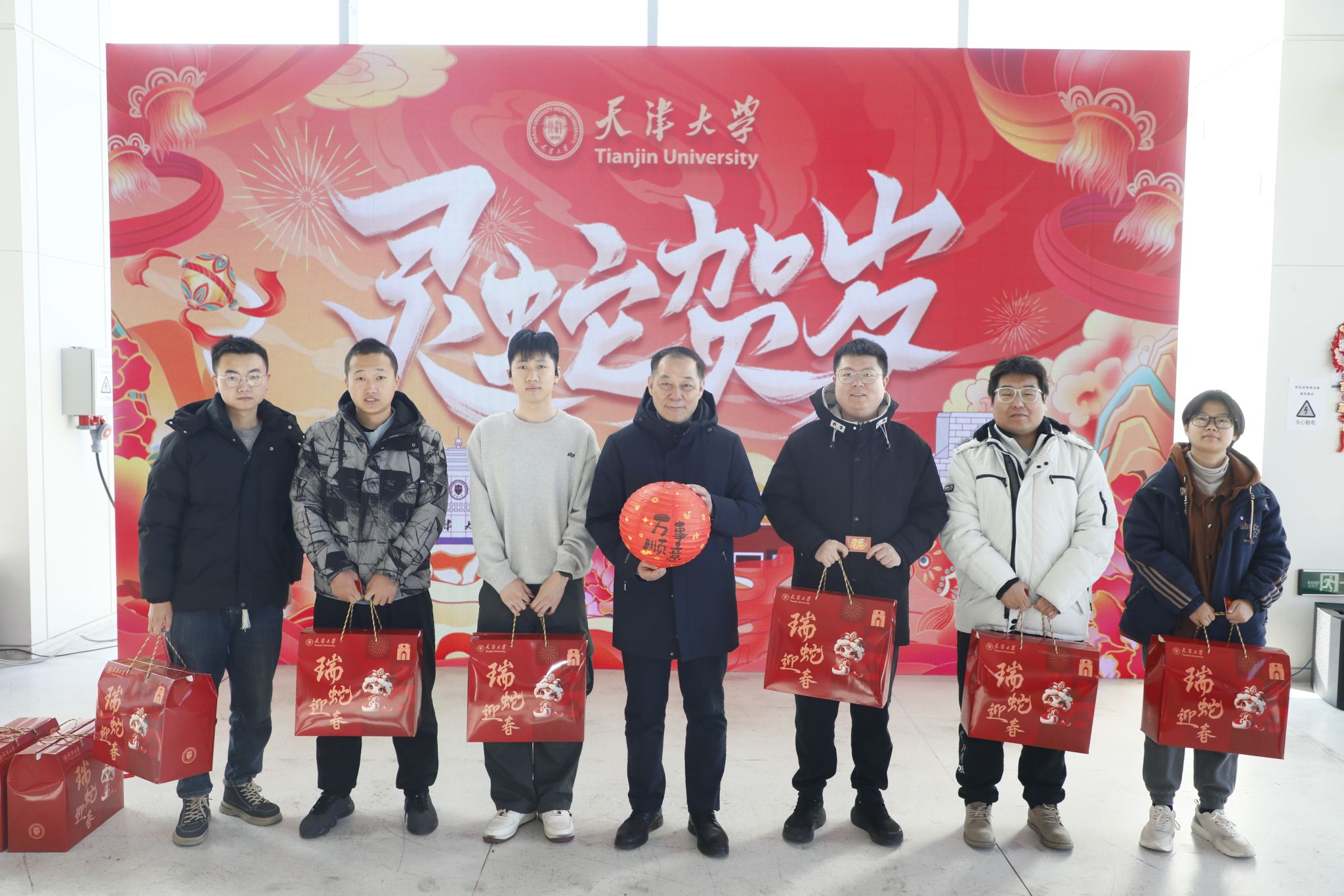 春节慰问留校学生是我校坚持了20余年的优良传统。为了让学生度过一个温馨、祥和、喜庆的乙巳年春节,丰富留校学生校园文化生活,我校开展了一系列迎新春活动:给留校学生发放新春零食礼包及蛇年限定纪念版校园购物卡;为留校学生免费提供除夕中餐、晚餐和除夕的早餐;各学院(部)在除夕当天组织迎新春、关爱留校学生的暖心活动等。杨贤金一行在北洋园校区的大通学生中心看望慰问留校学生,为留校学生发放春节零食礼包及纪念版校园卡。他详细询问了留校学生的学习生活情况和假期安排,嘱咐同学们合理规划寒假生活,注意劳逸结合,常与家人联系,报平安、送祝福,并祝福大家健康成长、学业有成。(编辑赵晖)