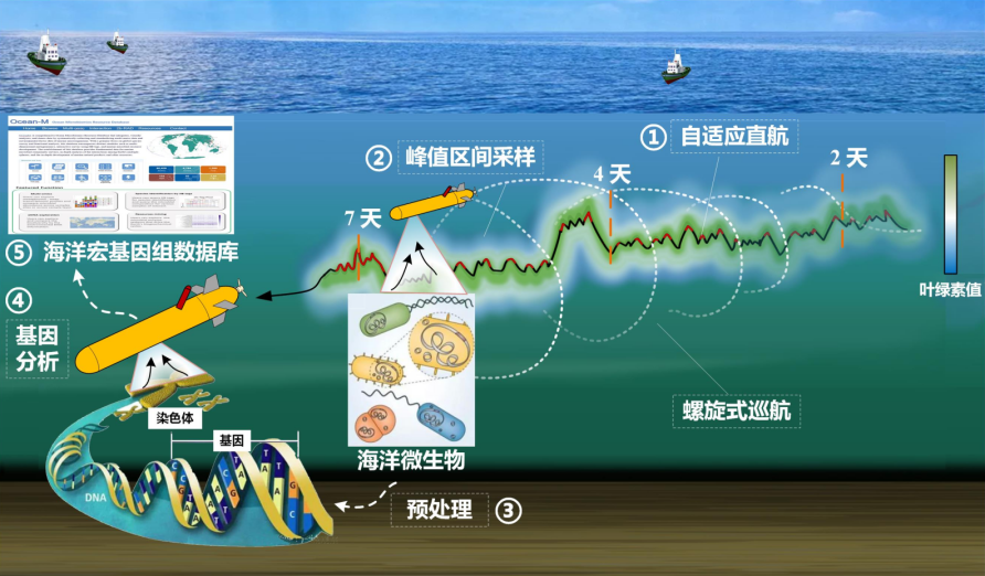 传统的深海微生物采样技术主要依赖于船舶定点式采样,需要经过采水器释放、采水、回收和船基过滤、冻存、核酸提取等过程。随着海洋技术发展,无人遥控潜水器小范围移动采样、深海坐底平台静态采样等也逐步得到了应用尝试。该MSAUV的成功研制可将采样形式从局域单点人工辅助扩展到区域多点全自主,实现深海微生物样本从原位采样-高保真保存-核酸制备的无缝衔接,有效避免因环境变化导致的样本污染、降解和核酸结构变化,从而显著提高样本质量、缩短采样周期和提升海洋微生物生境研究效率。