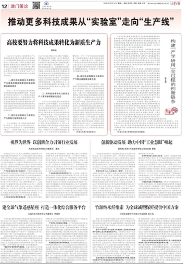 总之,高校科技成果转化为新质生产力是一个系统工程,需要多方主体共同努力。天津大学通过打造“协同创新、绿色引领、数字赋能、跨界融合”的特色化体系,实现高校科技成果产业化。未来,我们期待更多的高校能够发挥自身优势,与企业和社会各方力量携手,深化“产学研用”融合,共同推动科技创新、新质生产力发展和产业转型升级,为实现高质量发展贡献力量!