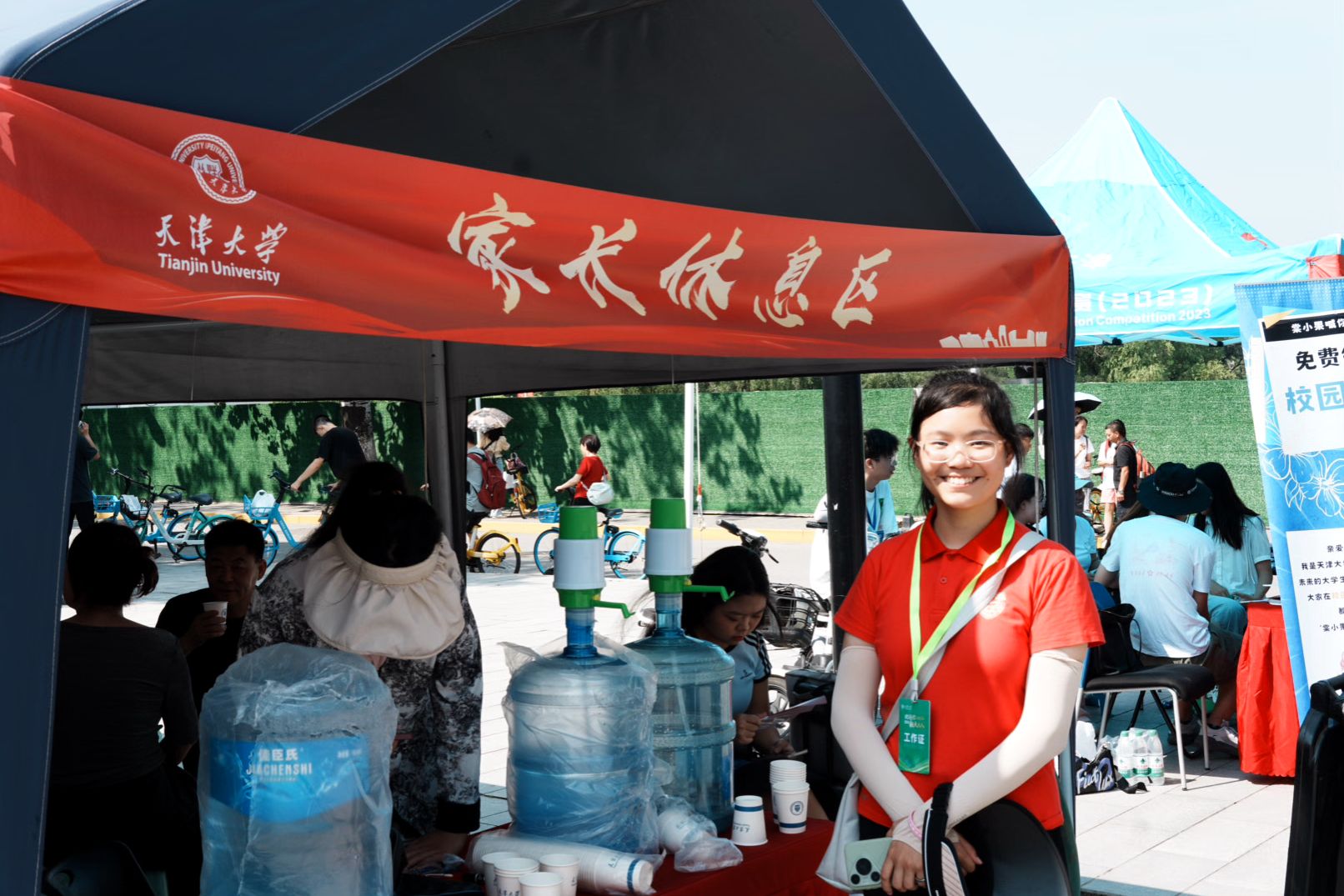 迎新期间,天津大学也在后勤保障上不断推出暖心服务:双校区食堂全天开放,免费提供饮用水、绿豆汤和酸奶,方便学生“开学第一餐”和家长休息;校园店铺也捧出了免费使用的天大地图、小推车、饮用水等迎接新生和家长到来;校园内设置多处迎新服务台,提供指引和咨询服务,学校还配备专用车辆协助新生把大件行李运到宿舍。法学院新生阿热娜尔一个人从新疆来校报到:“从进校门到报道点,再到去宿舍,这一路上都有热情的志愿者,全程都很方便,学校安排非常周到非常人性化,让我体验到了家的温暖!”