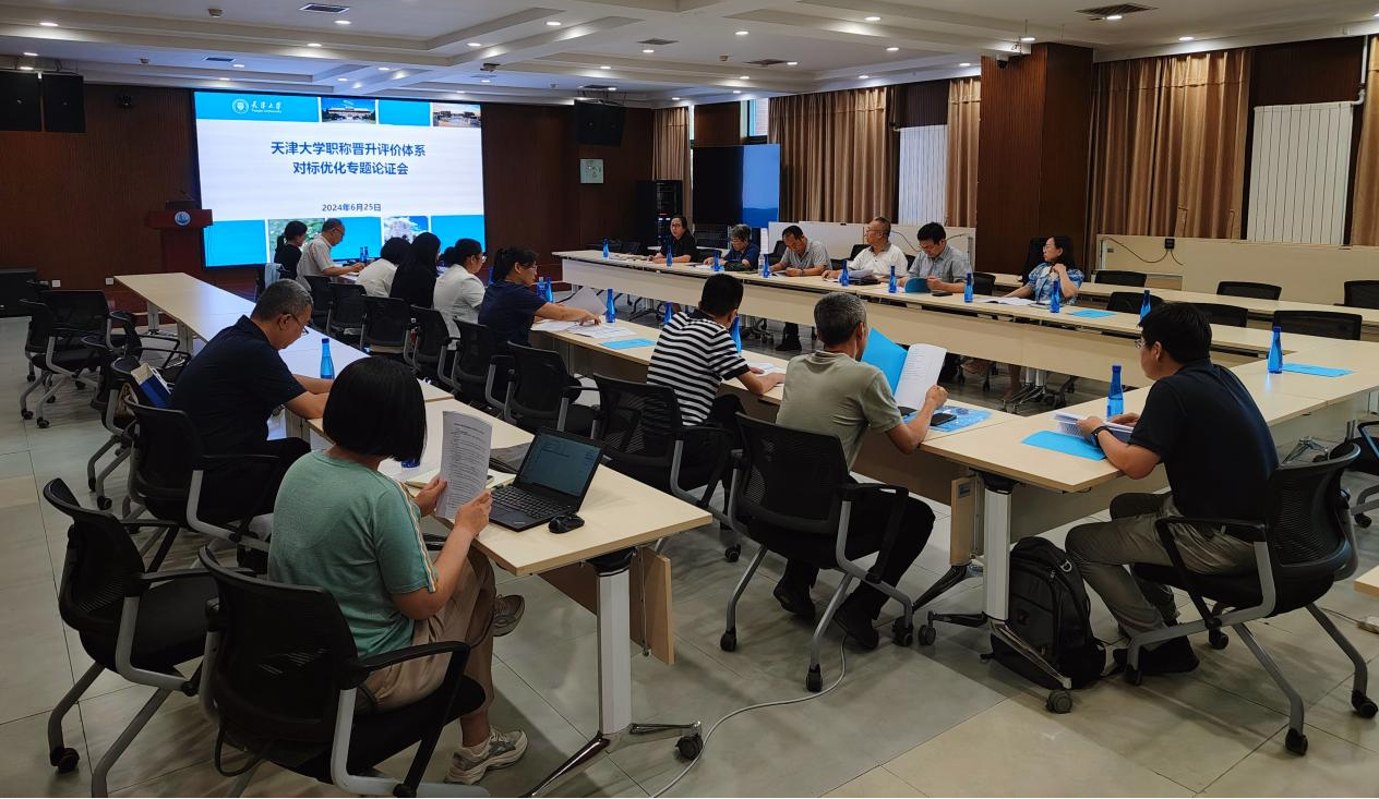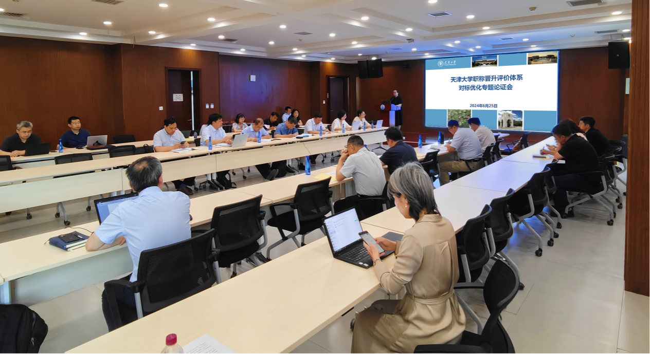 2024年6月25日,天津大学职称晋升评价体系对标优化专题论证会在北洋园校区举行。论证会按照理工组、人文社科组和专业技术系列组分阶段进行,校党委常委、副校长郑刚出席会议并讲话,学校职称评聘委员会及教师聘任委员会等相关专家代表,学工部、发规处、教务处、研究生院、新利18网址登录
