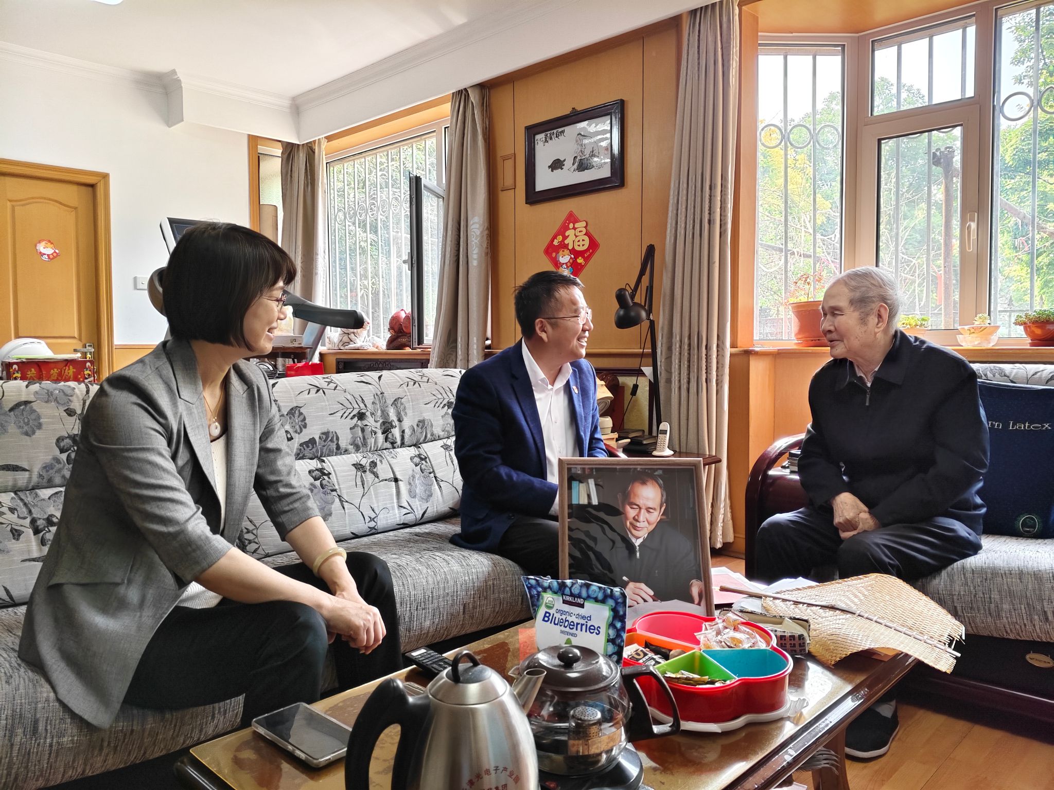 本站讯(通讯员 贺宇)5月26日上午,天津市总工会副主席、党组成员王克文一行专程来到全国先进工作者、中国工程院院士、天津大学教授叶声华家中,为即将迎来生日的叶声华送上关怀与祝福。天津大学党委常务副书记、工会主席雷鸣参加慰问。
