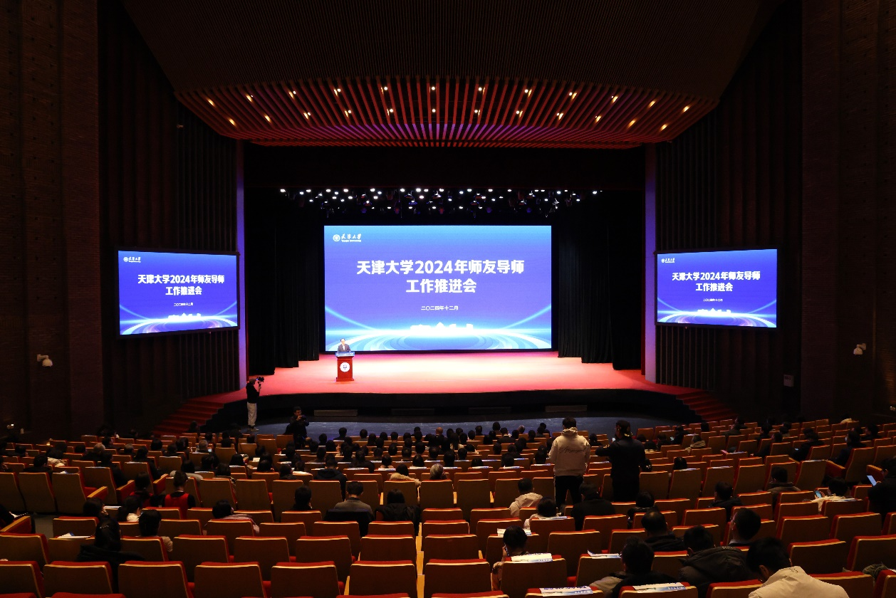 本站讯(通讯员 陶森)12月27日,天津大学在北洋园校区求实会堂报告厅,召开2024年师友导师工作推进会。校党委书记杨贤金,党委常委、常务副校长胡文平,党委副书记雷鸣,党委副书记、纪委书记、国家监委驻天津大学监察专员李炜,校长助理刘秀国,党委常委、组织部部长赵金铎,总会计师、财务处处长张鹏出席会议,机关部(处)及学院全体中层干部、学院师友导师、辅导员、本科生教学管理队伍、学生代表等参加。会议由学工部部长赵欣主持。