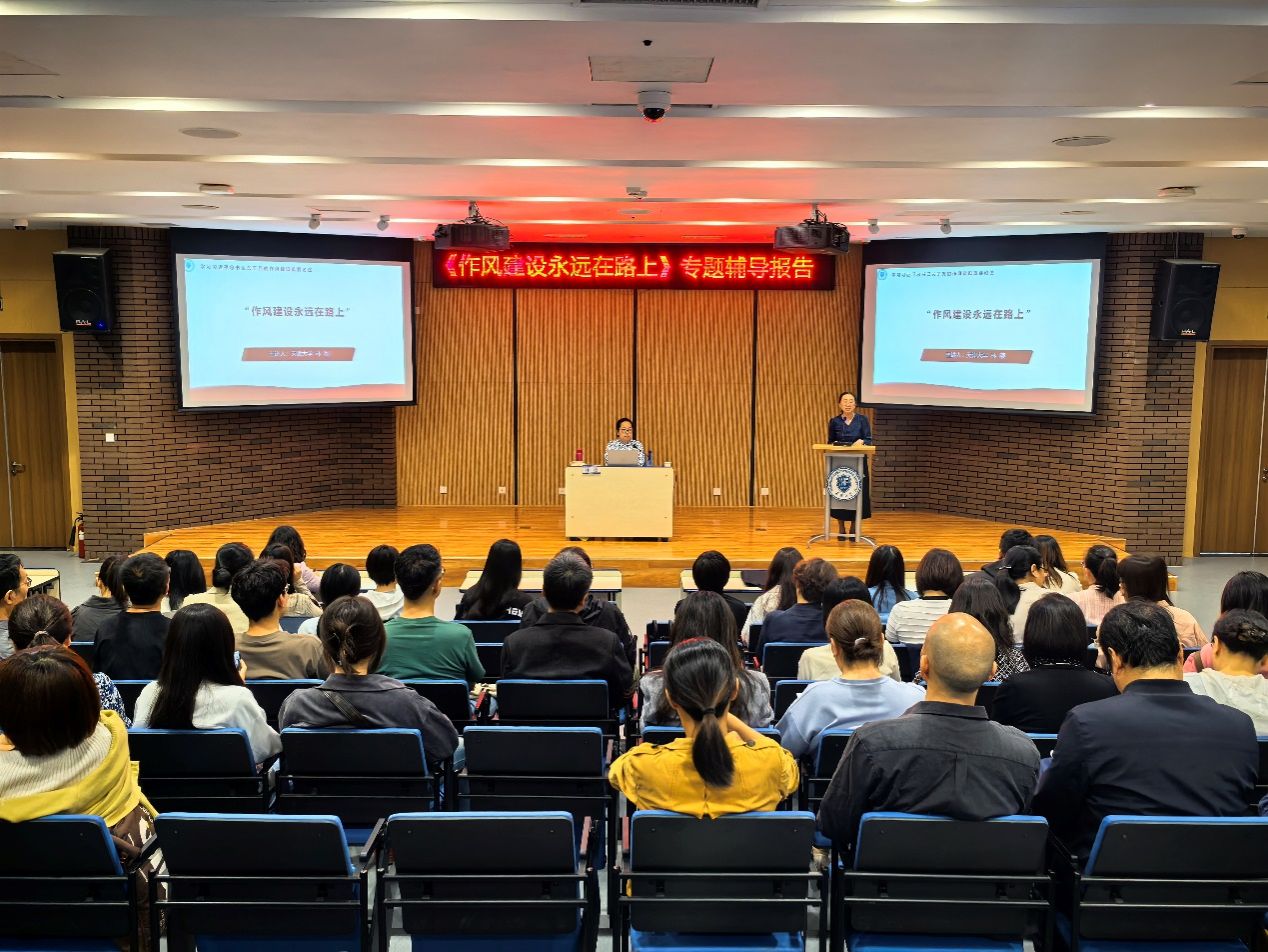 本站讯(外国语学院供稿)为深入贯彻中央八项规定精神,推动作风建设走深走实,5月23日上午,外国语学院党委举办专题理论辅导报告,邀请天津大学马克思主义学院林颐副教授作题为《作风建设永远在路上》专题报告。学院领导班子成员、全体教师及学生党员代表参加学习。