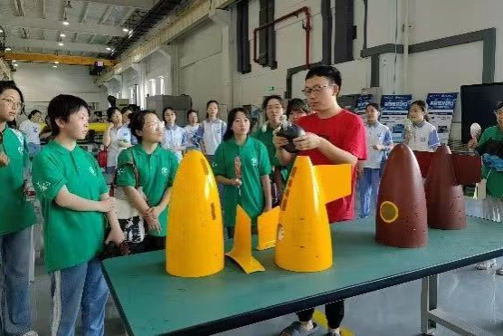 机械系学子为宕昌中学生介绍海燕滑翔机
