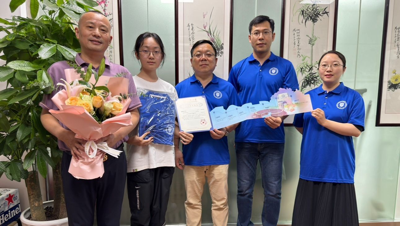 天津大学宁波舟山校友会会长、宁波聚泰源高分子材料有限公司董事长许建勇(92级化工设备与机械毕业生),校友会秘书长、宁波数字产业集团有限公司鲍银涛(08级材料科学与工程毕业生),校友会副秘书长、中国兵器科学研究院宁波分院张迎迎(12级材料加工工程硕士毕业生)怀揣喜悦的心情,敲响新天大人周紫檀同学的家门,亲手将编号为0001的2024年天津大学本科生录取通知书送达。