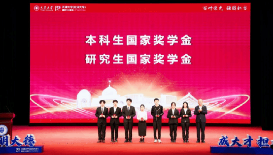 表彰会现场,还有12位学子作为道德文明先进、体育风采奖、文艺先进个人、劳动教育先进个人、志愿者标兵、学业典范以及先进集体代表上台领奖,他们用奋斗书写全面发展的青春答卷,有力践行了天津大学百卅年来矢志“兴学强国”的责任与担当。