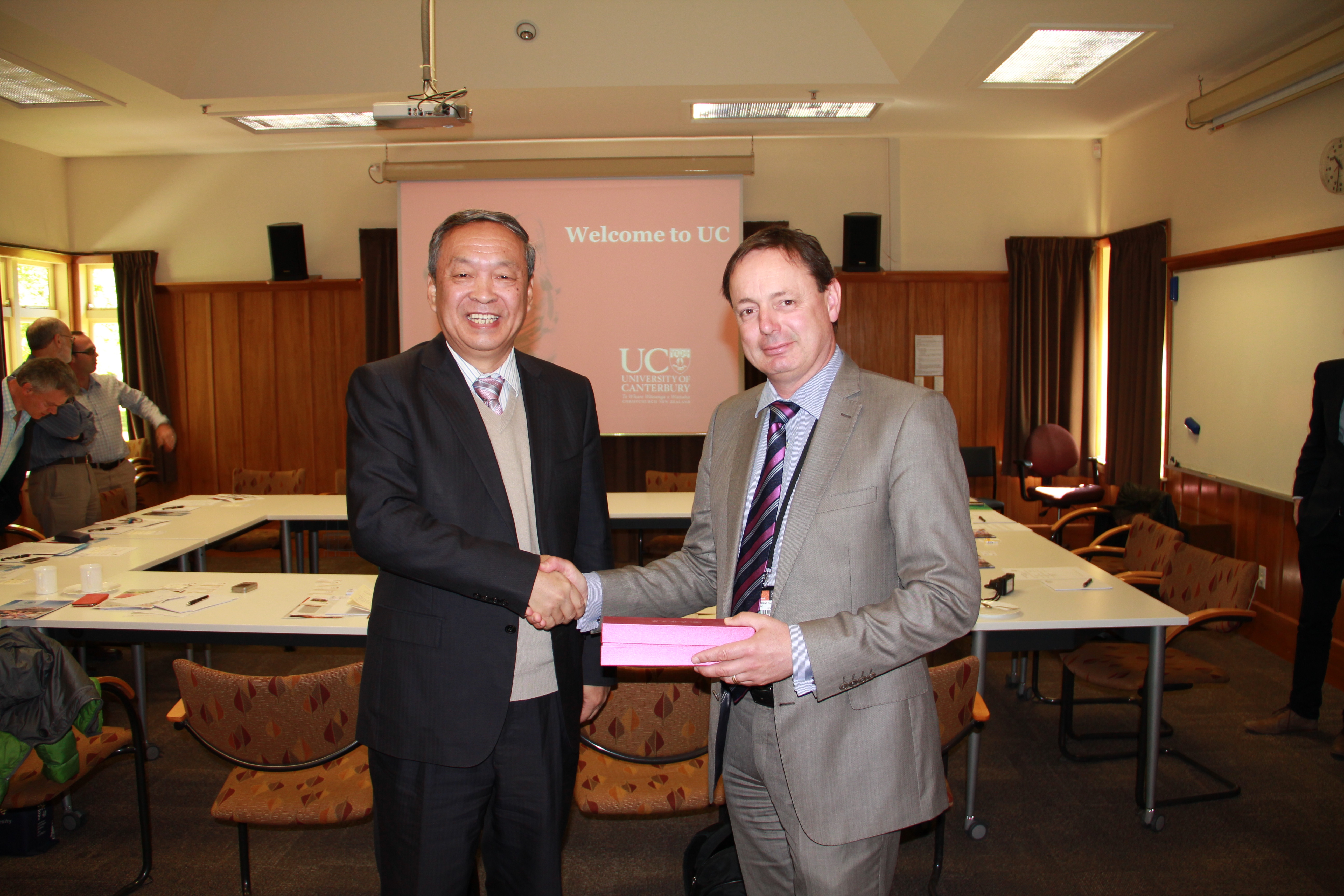 访问坎特伯雷大学期间,该校学术副校长Hamish Cochrane会见代表团一行。双方回顾了在过去几年间的合作,特别是本科生联合培养项目。Cochrane副校长指出坎特伯雷大学十分重视与天津大学的合作,希望通过实质性合作项目与天津大学建立战略合作伙伴关系。汪曣表示两校工程类专业有着很高的匹配度,希望能拓展在信息、化学化工、生物医学工程等领域的学生联合培养、教师互访以及合作新利18网址登录