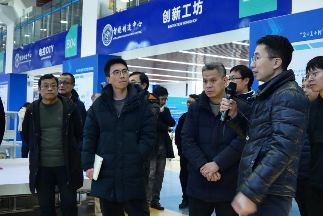 康荣杰教授首先带领与会人员参观智能制造中心,对中心数据分析、智能设计、创新工坊等区域模块及功能进行了详细介绍。