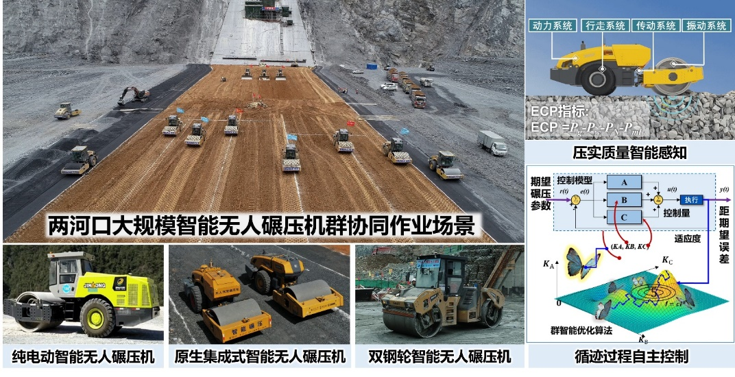 项目简介:在高海拔、复杂气候、地形、地质、工艺和分区等多重复杂条件下建设高坝工程面临艰巨挑战。项目团队历经10余年持续攻关,创立了复杂条件高坝工程智能建设理论,创建了智能仿真、智能监控及无人碾压协同作业方法与技术,显著提升了我国高坝工程建设能力。成果成功应用于两河口、黄登、丰满等52座高坝工程,具有显著社会和生态效益。研究成果将推广至如美、班达及“一带一路”沿线国家高坝工程,前景十分广阔。