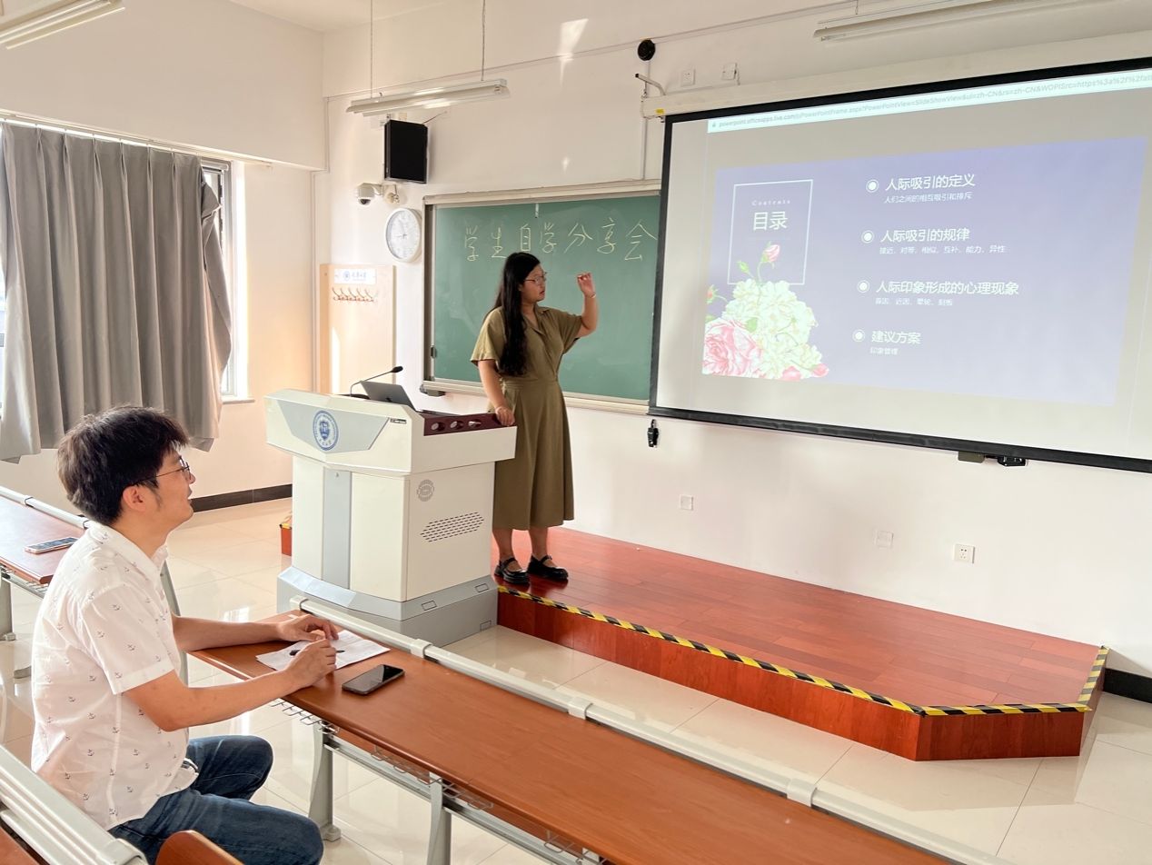 兴趣出发,平等交流。“心理学与生活”作为公共选修课,学生们选择该门课程的原因是对心理学相关知识感兴趣;王潜龙老师作为工科出身的老师,开设这门课也出于自身长期的兴趣爱好。因此,该课程充分体现了从师生兴趣出发,共同学习、共同探讨和共同进步的特点。在该课程16学时安排中,王潜龙老师讲授了8学时,主要讲授这10余年他认为学习心理学需要掌握的重要的基础知识及出国留学和回国工作的重要心理和生活体验,让学生们掌握基本的心理理论和知识。另外8学时,教师充分发挥学生自主学习的能动性,让他们选择感兴趣的心理相关话题,剖析案例背后的心理理论,分析原因并给出可实操的生活建议。学生自愿报名上台分享和展示学习成果,老师和学生们通过提问,一起学习和探讨该部分心理知识的现实指导意义。这样大大增强了课堂的互动性。