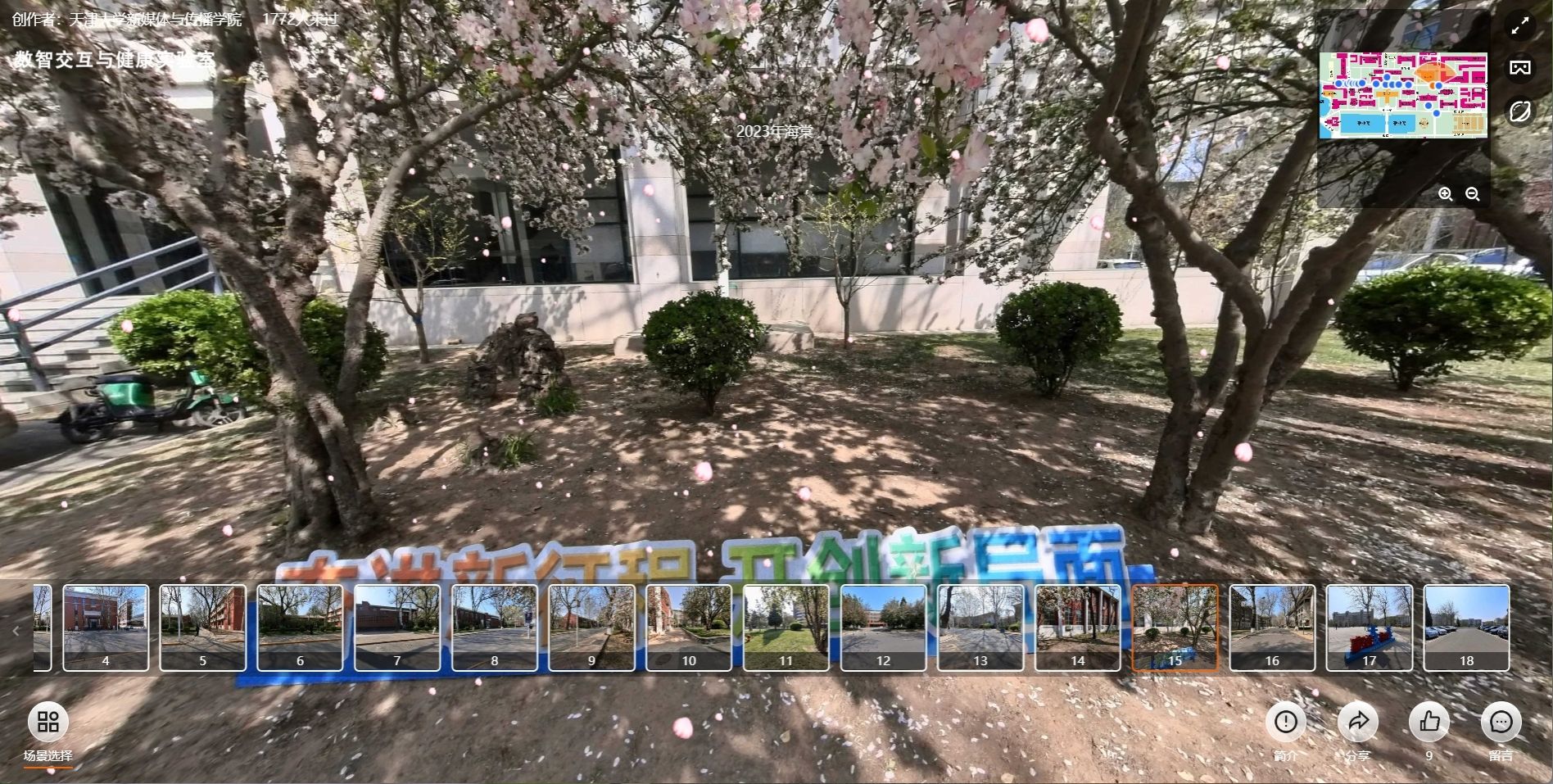 强实践基础,提升主流价值的破圈传播力。新媒体学院以“新媒体”为核心定位,着力培养熟悉新闻传播规律、善用数据算法、懂得新媒体治理的引领性复合型人才。“春回天大看海棠”,“纸外工坊”网络文化工作室利用虚拟现实技术对海棠盛开时的校园进行了场景重建,真正实现了“春花烂漫何处望,携友云上同去游”的美好愿景。