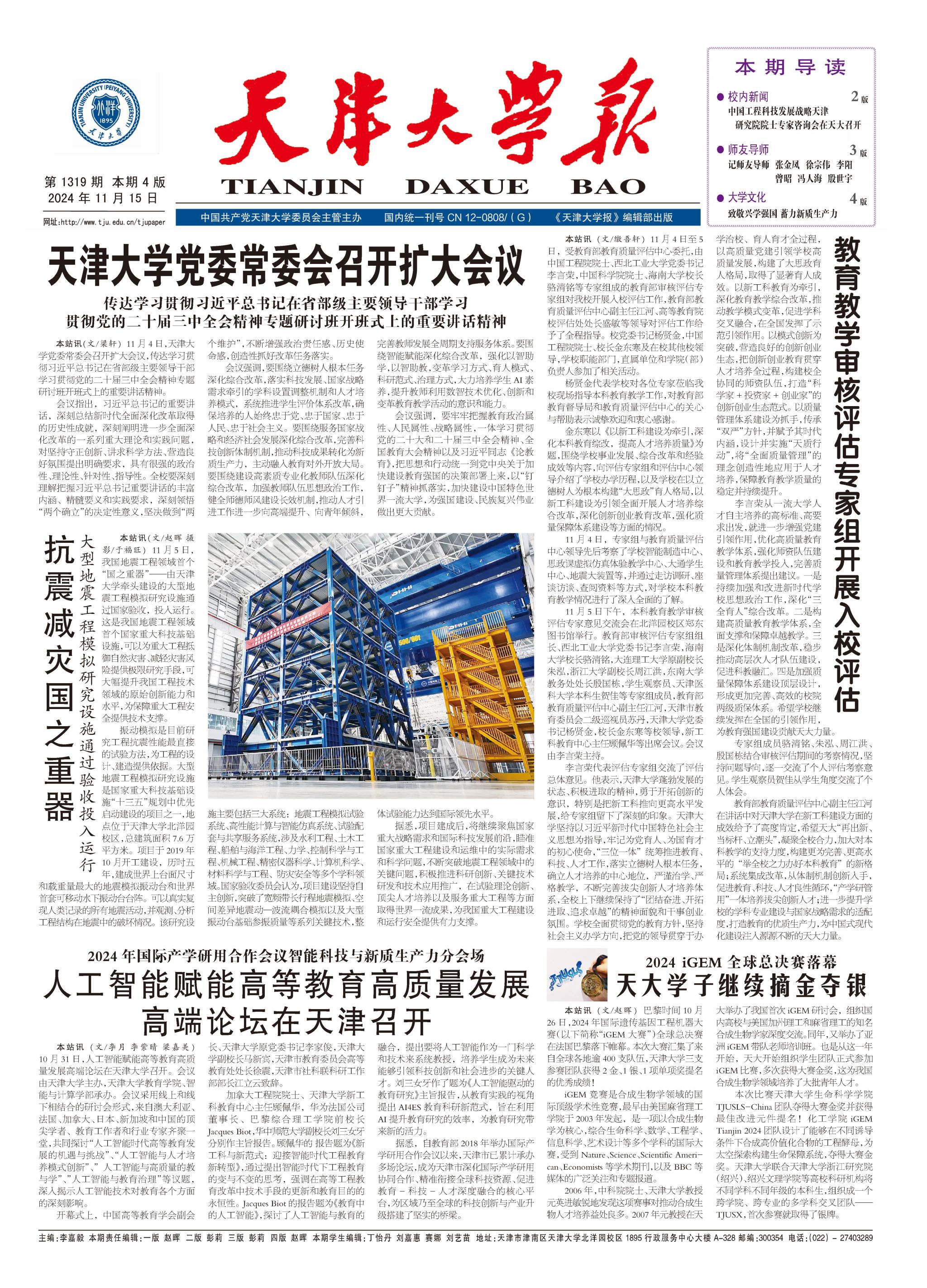●天津大学党委常委会召开扩大会议——传达学习贯彻习近平总书记在省部级主要领导干部学习贯彻党的二十届三中全会精神专题研讨班开班式上的重要讲话精神