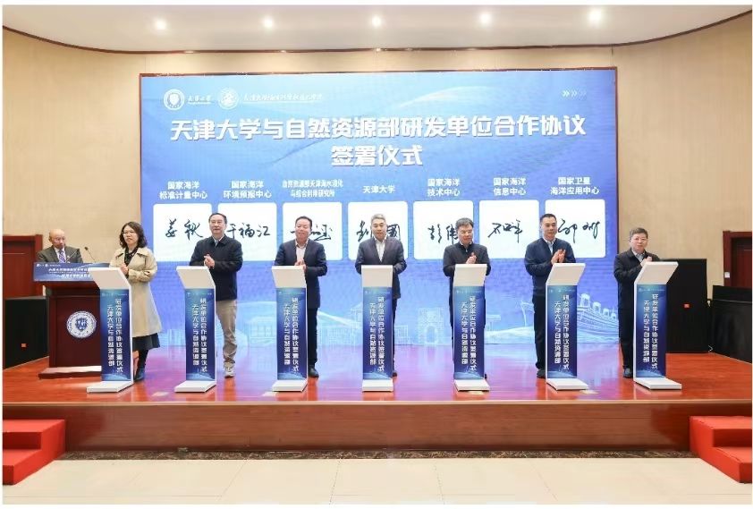 随后,天津大学与国家海洋技术中心等6家自然资源部研发单位共同签署《合作共建海洋科学与技术科教融合平台协议》。