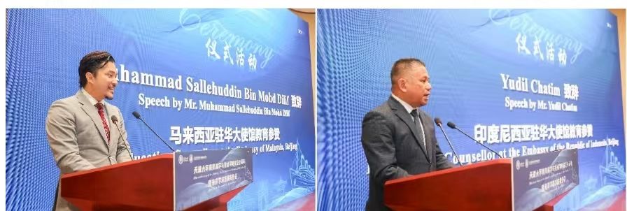 马来西亚驻华大使馆教育参赞Muhammad Sallehuddin Bin Mohd Dilif,印度尼西亚驻华大使馆教育参赞Yudil Chatim祝贺海洋学院成立十周年,肯定了海洋学院与东盟国家高校在国际合作交流方面取得的丰硕成果。