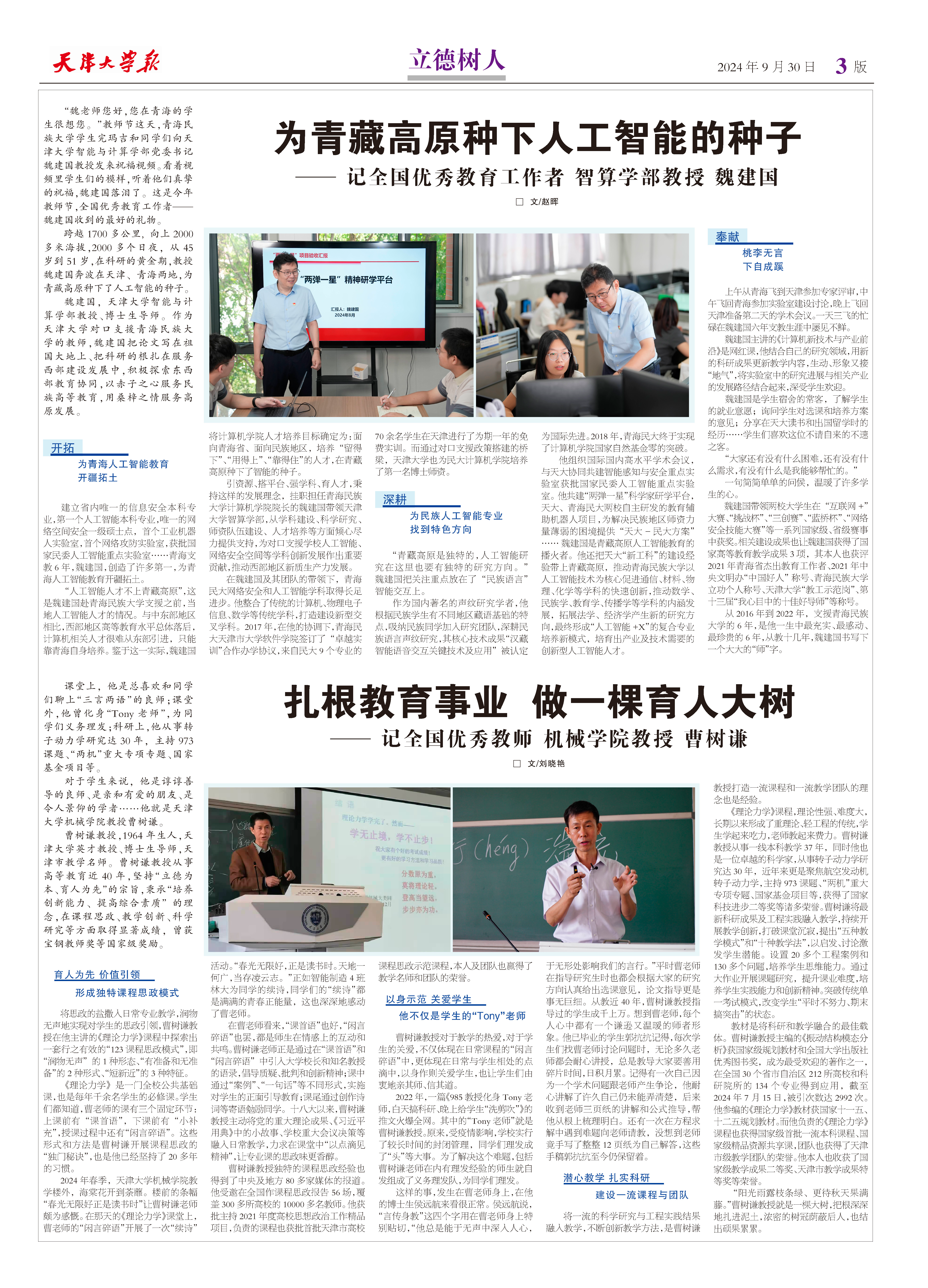 ●为青藏高原种下人工智能的种子—— 记全国优秀教育工作者 智算学部教授 魏建国