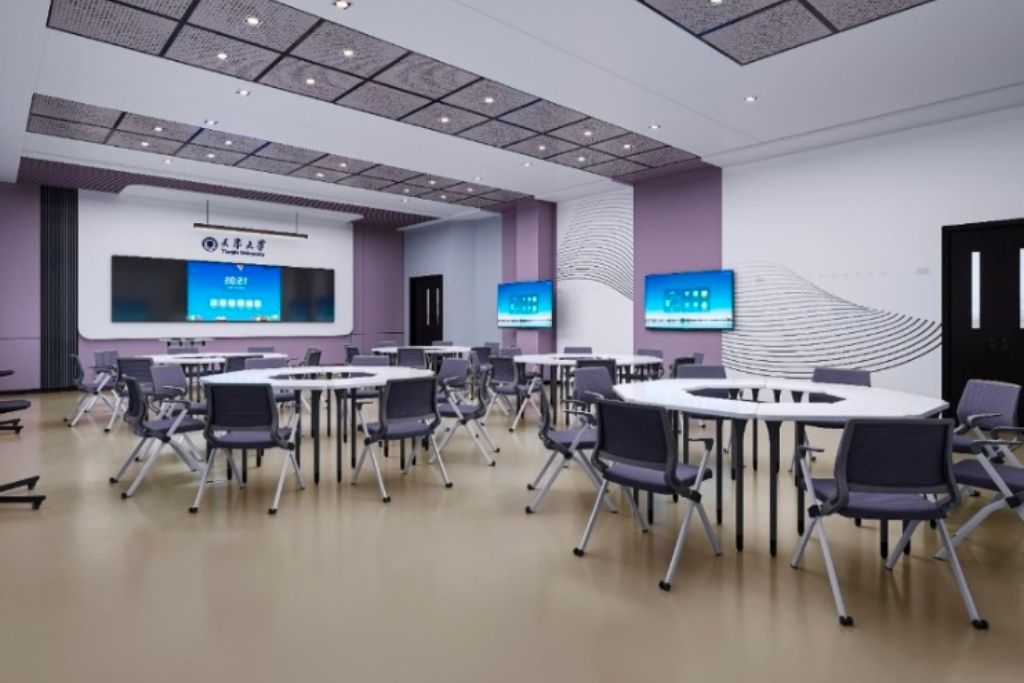 在北洋园校区33教学楼,天津大学全景教学空间正式启用,占地341㎡,能同时容纳200人开展活动,是集网络教学、实境教学、三维模型授课、分组授课、虚拟实训、远程同步课堂、科学研究于一体的一整套软硬件融合空间。