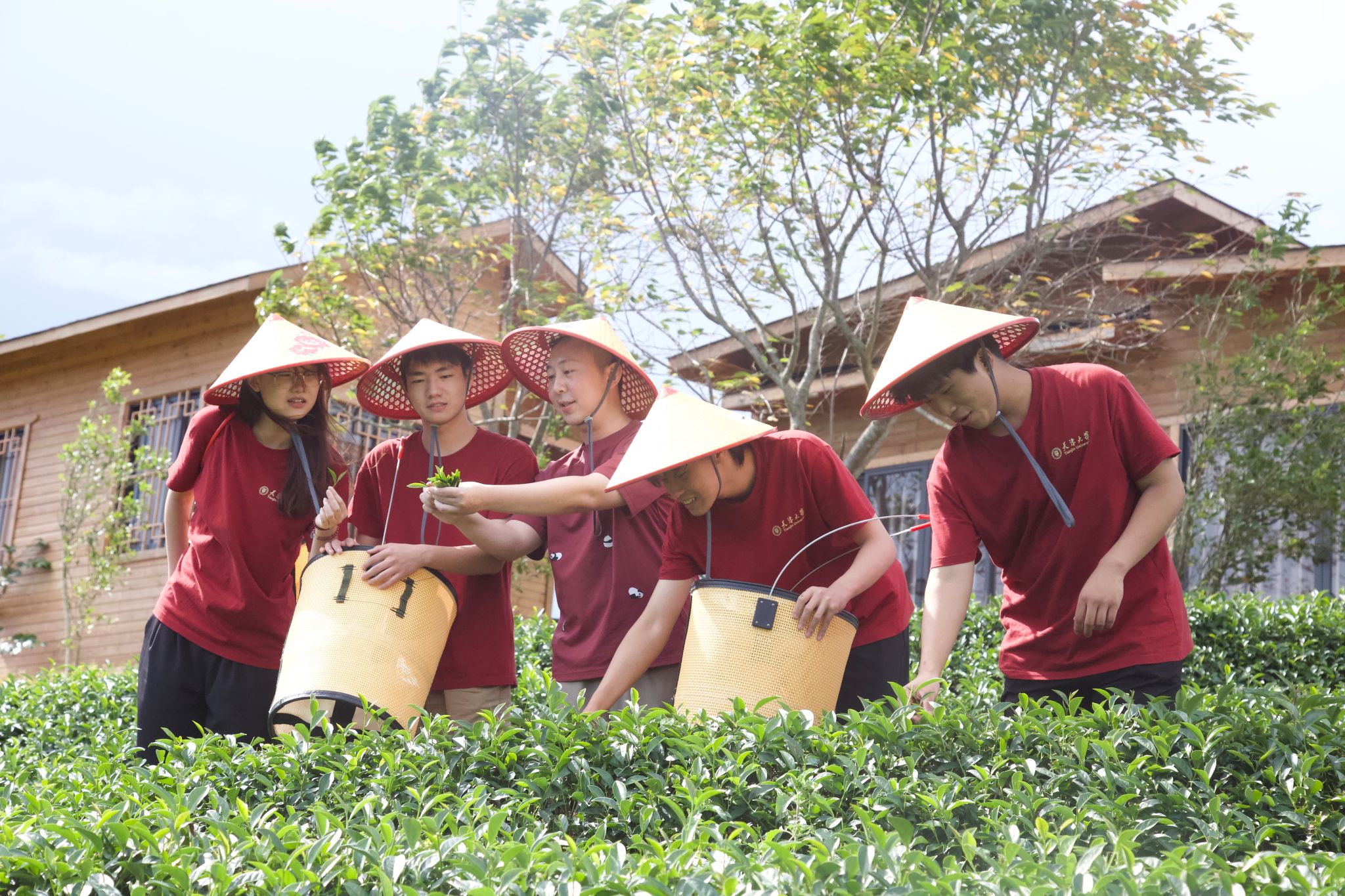 图3:天津大学无忧实践队成员与台湾省茶农吴曜任在福建省漳平市永福镇茶园采茶
