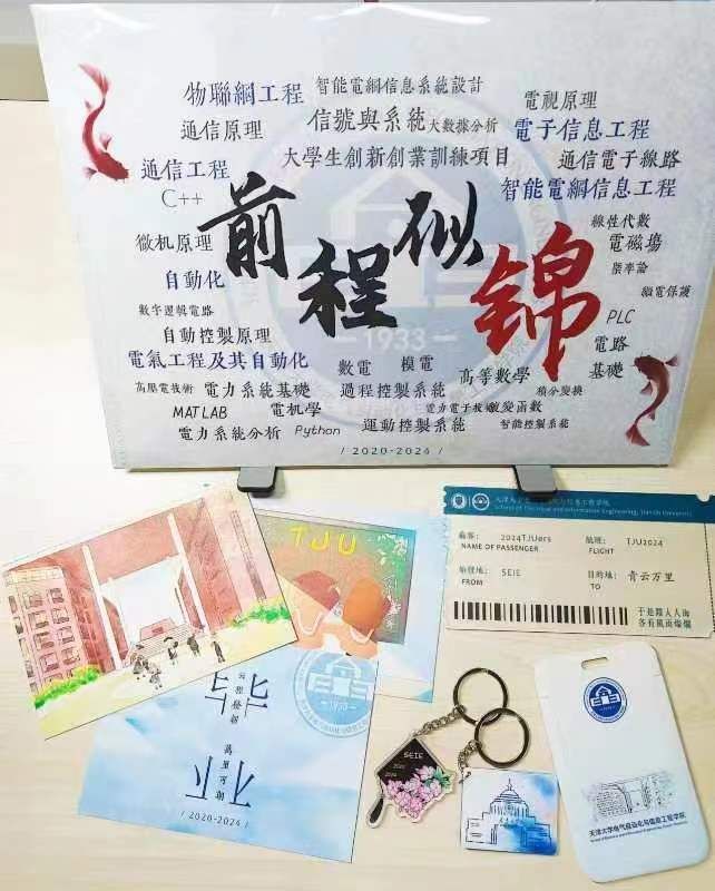 临别之际,为毕业生赠送各具特色的毕业礼物是天津大学的传统。法学院外,自动化学院为毕业生准备了写满四年课程的文件袋等作为伴手礼,寓意“知识累积与传承”;精仪学院为2024届本科毕业生定制了木质黄铜签字笔及“一路前行”定制书签尺作为伴手礼,希望同学们谨记“实事求是、精益求精”的为人治学准则;建筑工程学院则为毕业生准备了扉页印有“移山填海,建功立业”口号以及师长们毕业寄语的文创本作为伴手礼;经管学部组织毕业生簪花装饰学士帽,寓意毕业生未来“一路生花”……