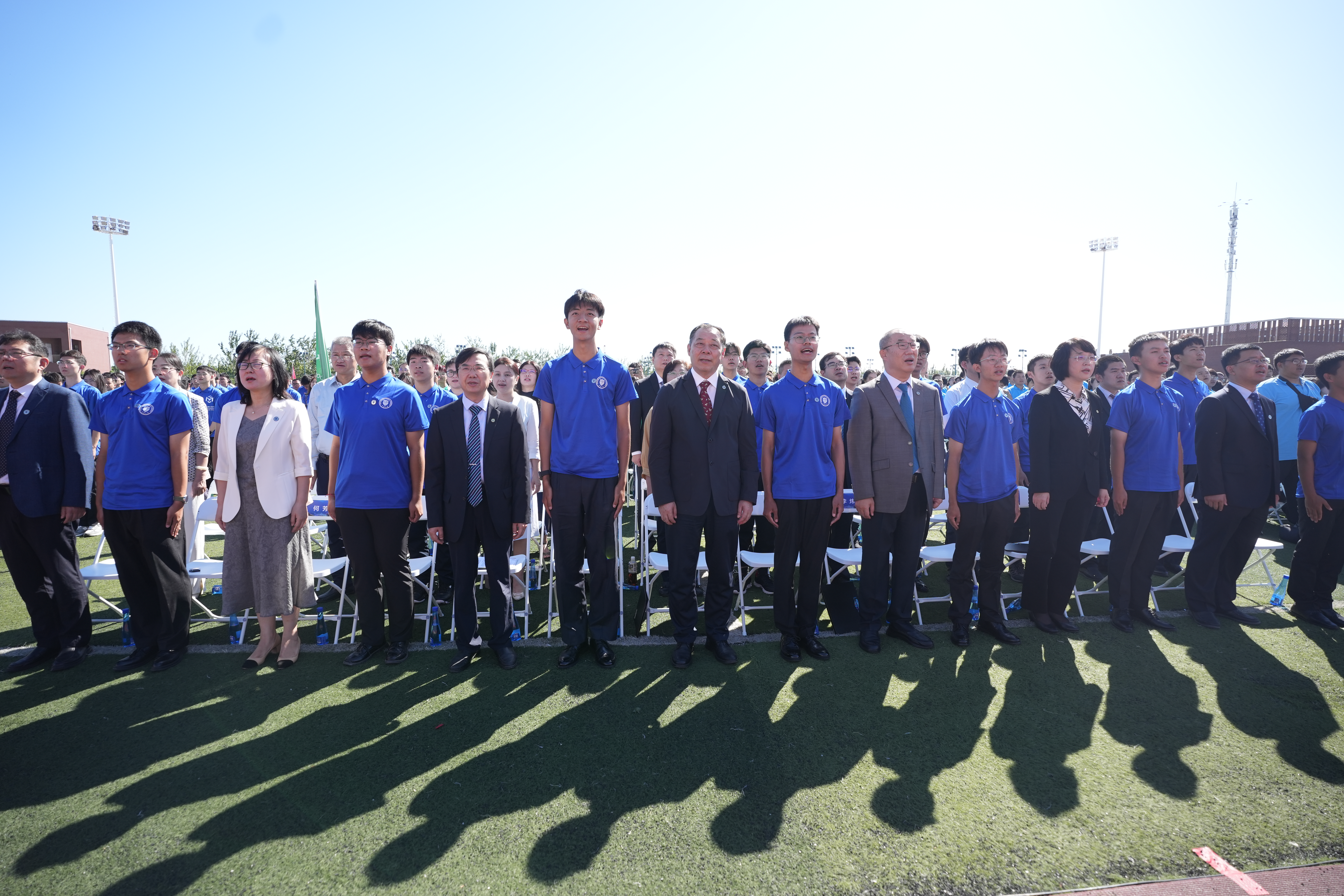 开学典礼前,在校生代表与新生共同举行了精彩的文艺演出,一曲《我和我的祖国》的合唱表达了对祖国的热爱和对即将到来的中华人民共和国成立75周年的祝福。