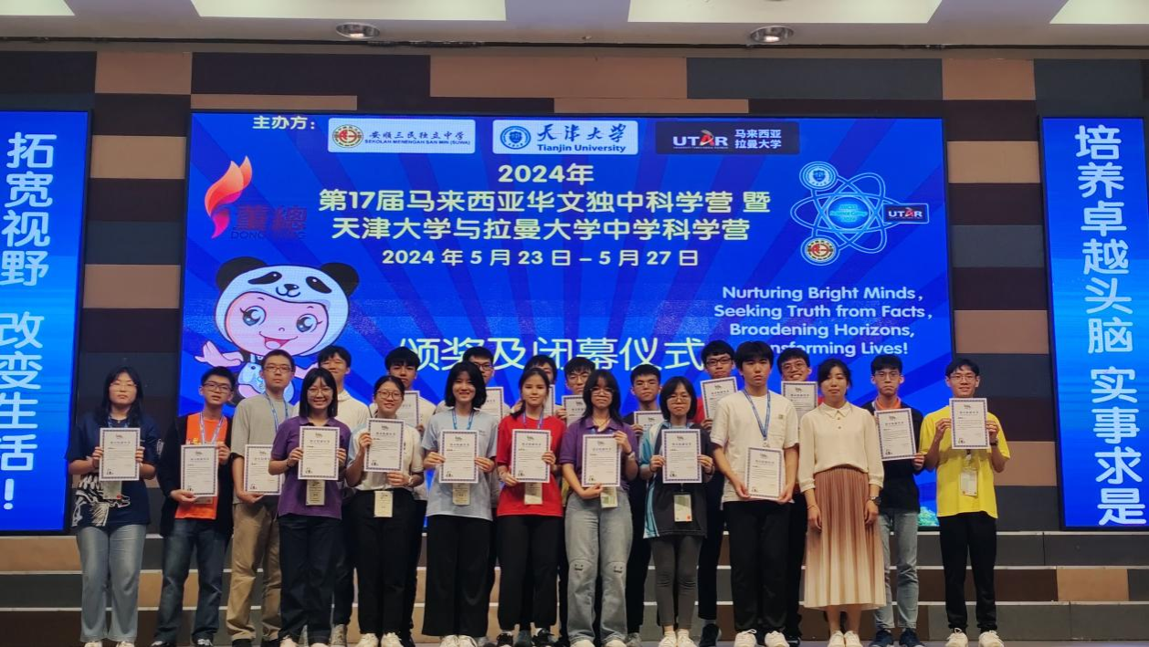 23日至27日,由马来西亚华校董事联合会总会(董总)、天津大学、拉曼大学共同主办的第17届马来西亚华文独中科学营暨拉曼大学与天津大学中学科学营正式开幕。这是我校首次在海外举办科学营,来自全马44所中学的247名学生参加了包括化学创意实作竞赛、化学知识笔试、口试以及科学课题创意海报设计比赛在内的一系列活动。