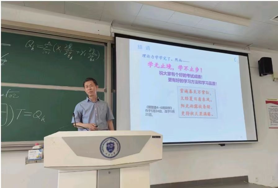 2024年春季,天津大学机械学院教学楼外,海棠花开到荼蘼。楼前的条幅“春光无限好正是读书时”让曹树谦老师颇为感慨。在那天的《理论力学》课堂上,曹老师的“闲言碎语”开展了一次“续诗”活动。“春光无限好,正是读书时。天地一何广,当存凌云志。”正如智能制造4班林大为同学的续诗,同学们的“续诗”都是满满的青春正能量,这也深深地感动了曹老师。