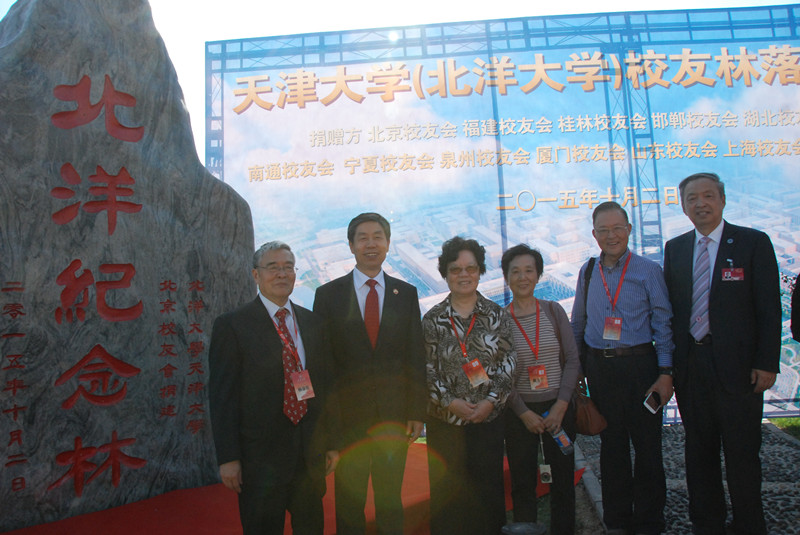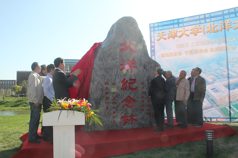 典礼上,与会嘉宾共同为北洋校友林纪念石揭幕,庆祝天津大学北洋校友林落成。(摄影记者刘洋 特约摄影于秀兰)