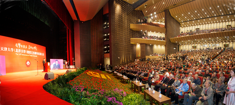 教育部副部长杜占元出席大会。天津大学校长李家俊、中国高等教育学会第六届理事会会长瞿振元、上海交通大学校长张杰、爱丁堡大学校长提摩西·奥谢(Timothy O’shea),以及天津大学校友代表、原国资委主任李荣融,中国航空航天集团五院总体部高级工程师、“神舟-10”系列飞船系统总指挥何宇分别致辞。中国科学院院士、机械学院教授周恒和化工学院2010级博士生张鹏分别作为教师和学生代表发言。天津大学党委书记刘建平主持庆祝大会。