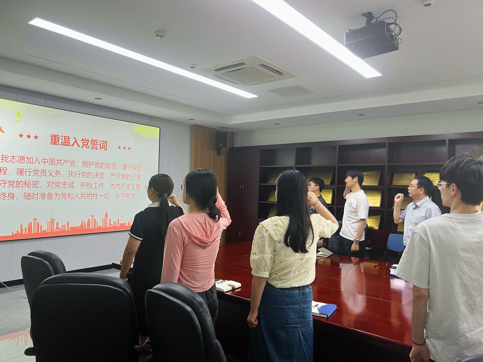 学习中,要守底线、讲原则,牢记身份与使命。最后,王天友带领全体党员同志重温入党誓词。