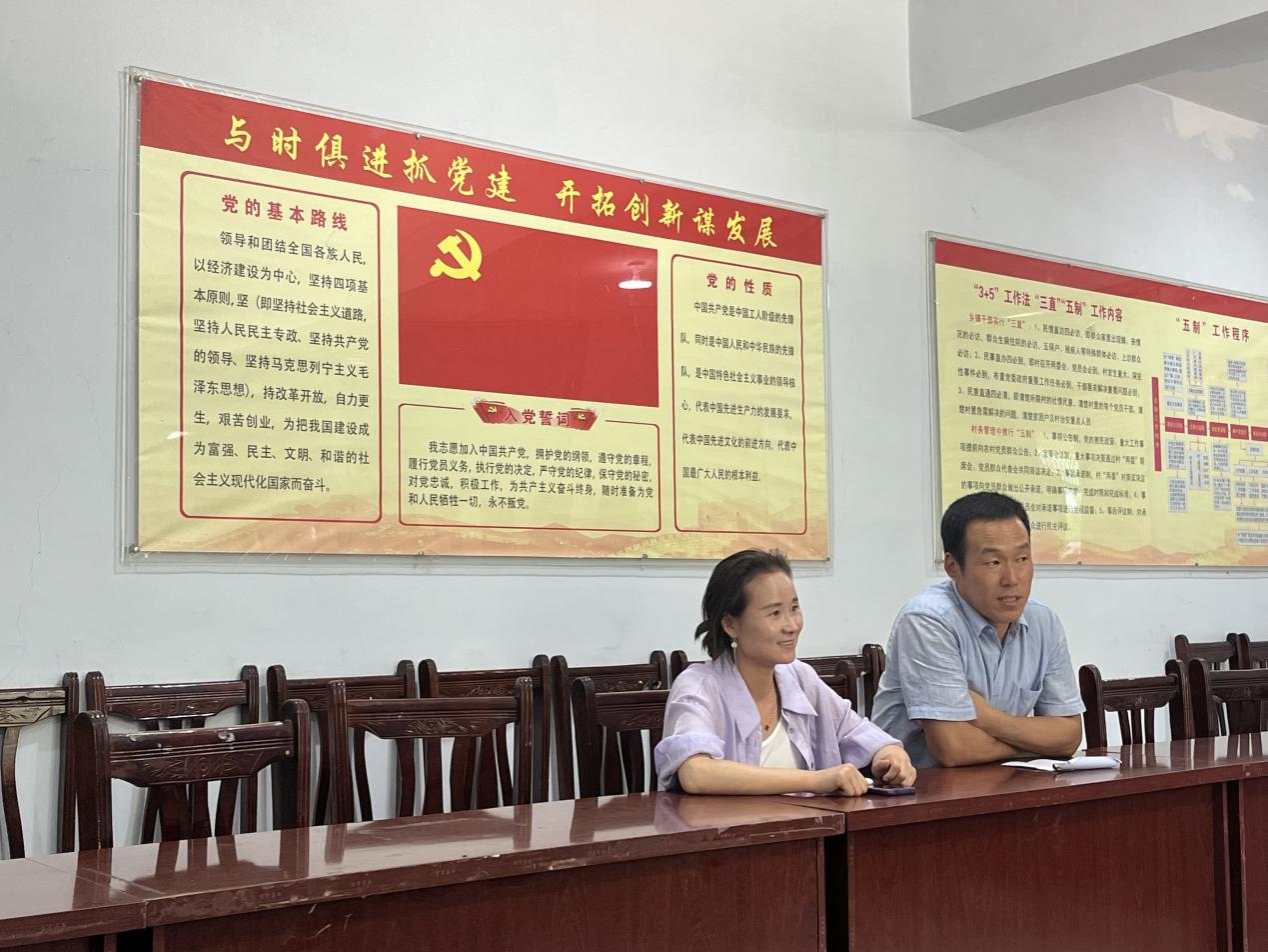 李宏娥(左一)在理川镇大舍沟村村两委办公楼和实践队一行在入党誓词下亲切交流