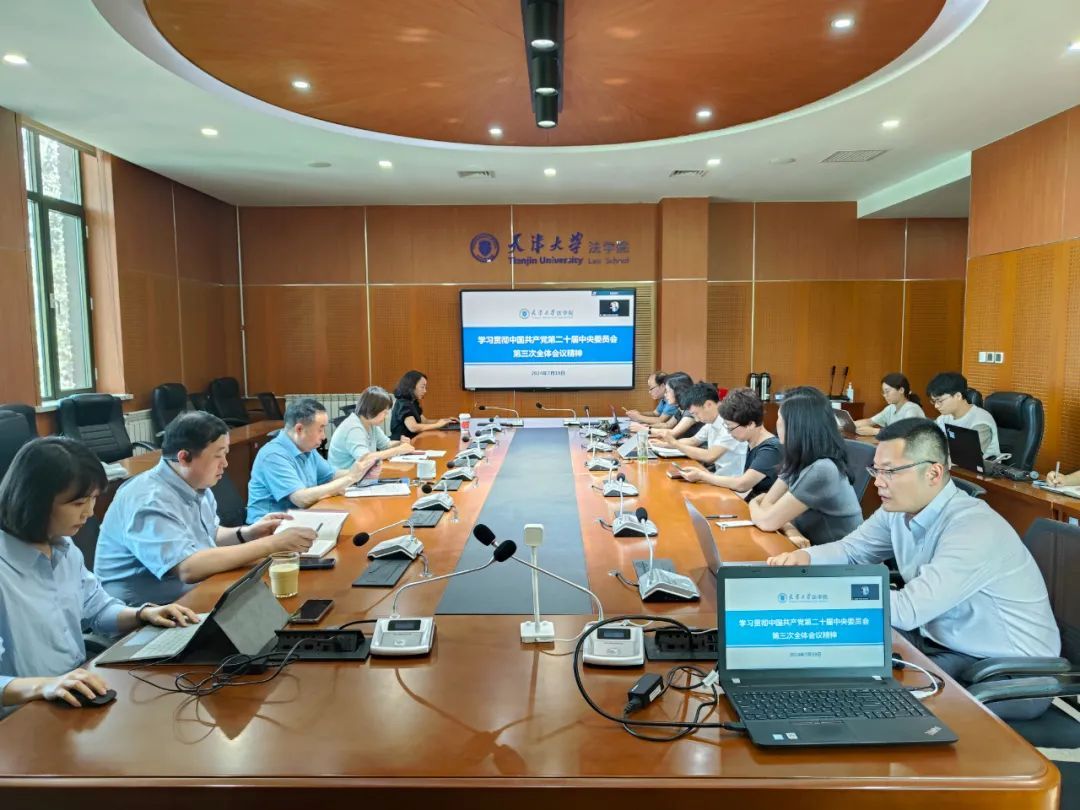 本站讯 2024年7月19日,天津大学法学院师生在330会议室集体学习党的二十届三中全会精神。法学院院长孙佑海,党委书记管虹,副院长杨健,副书记杨漫路,副院长于艳春,副院长杨雅婷,熊文钊讲席教授,王建学英才教授,教研组长王小钢英才教授,刘召成英才教授,温笑侗英才教授,教研组长刘霜教授,教研组长刘海安教授,郭小冬教授,院长助理、教研组长薛杨教授,院长助理田亦尧副教授,曹云吉副教授,王操老师,博士生代表于晶云,硕士研究生代表吴亮,本科生代表徐墨涵等通过线上线下相结合的方式出席会议。