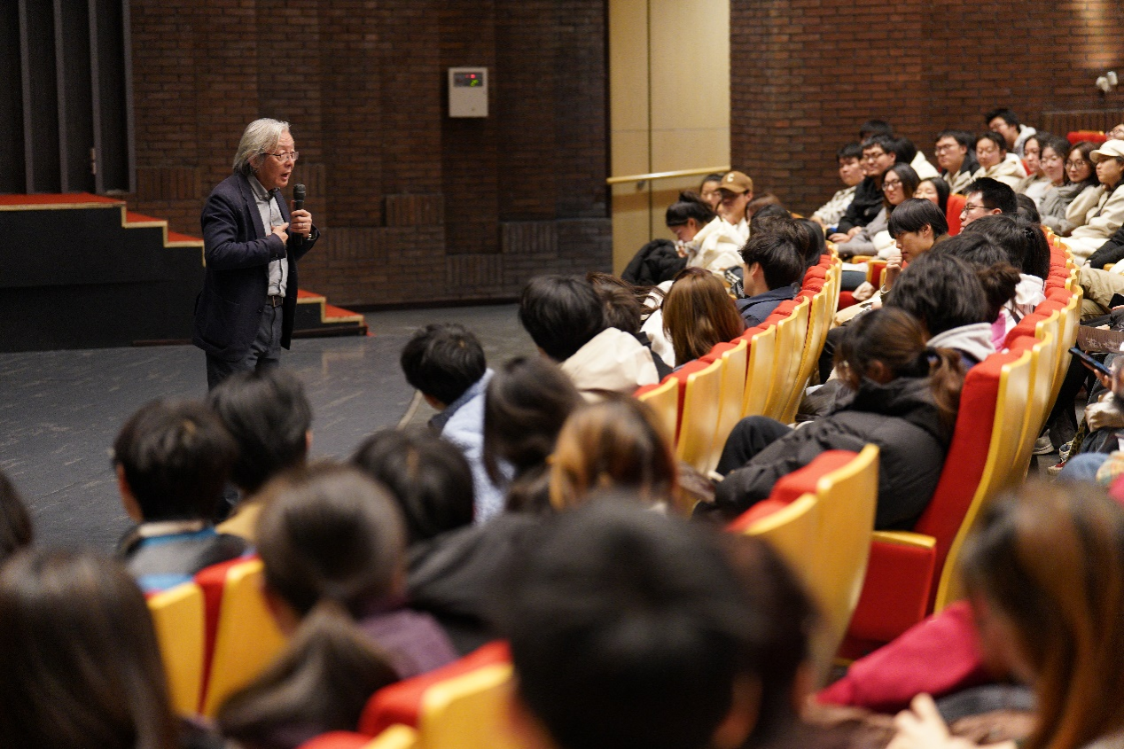 观众们在演员的引导之下,完成了一次又一次的“哥本哈根”的探寻旅程。演出结束后,现场千余名师生用长达数分钟的掌声表达了对导演和三位艺术家精湛表演的感谢。在观后谈的环节,在场的师生意犹未尽,就话剧的艺术魅力及《哥本哈根》的创作与表演等话题向王晓鹰导演提问,导演与师生进行了热烈的交流,再次引发思考与共鸣。