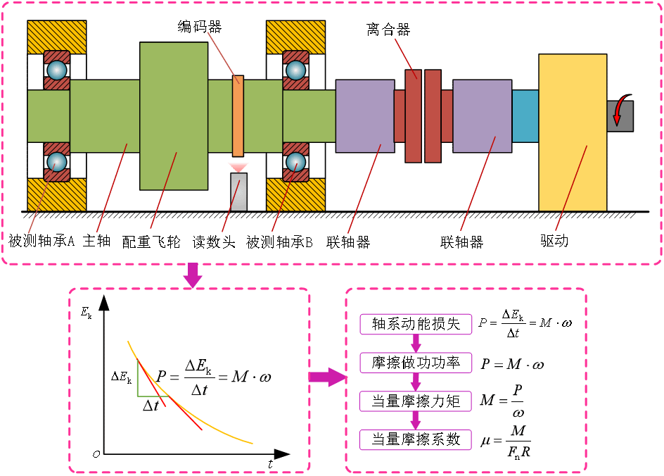 据悉,传统上往往使用平衡法、传递法等直接测量摩擦力矩,测量中需要轴承保持匀速转动,并且受限于力矩传感器的精度和操作等影响。本研究放弃直接测力矩,从能量角度入手,使用高精度磁栅角速度传感器,通过观察减速过程,捕捉动态的摩擦特性,揭示出轴承摩擦特性随转速动态变化的规律。基于此,团队可以用一个无量纲系数——当量摩擦系数综合评价不同轴承的摩擦表现,成功将同一批次的十个高精度轴承按摩擦性能进行了排序,多次验证均得到相同结果,这是传统方法无法实现的。