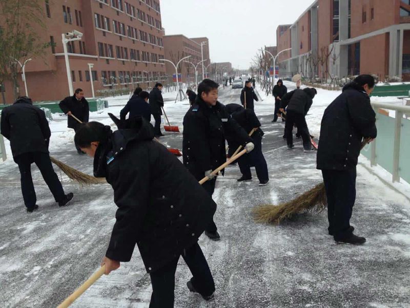 膳食管理中心和服务经营管理中心第一时间到达现场,指派专人负责清雪工作,保证了各食堂和门店责任区的冰雪被及时清除,并在各食堂和门店门口放置防滑垫和警示牌等,防止师生进入时滑倒。能源管理中心及时查看电站及能源站周围的雪情,并对各站点进行清雪,令专人24小时值班,监测机器运行参数,保证新、老校区正常地供电、供暖。