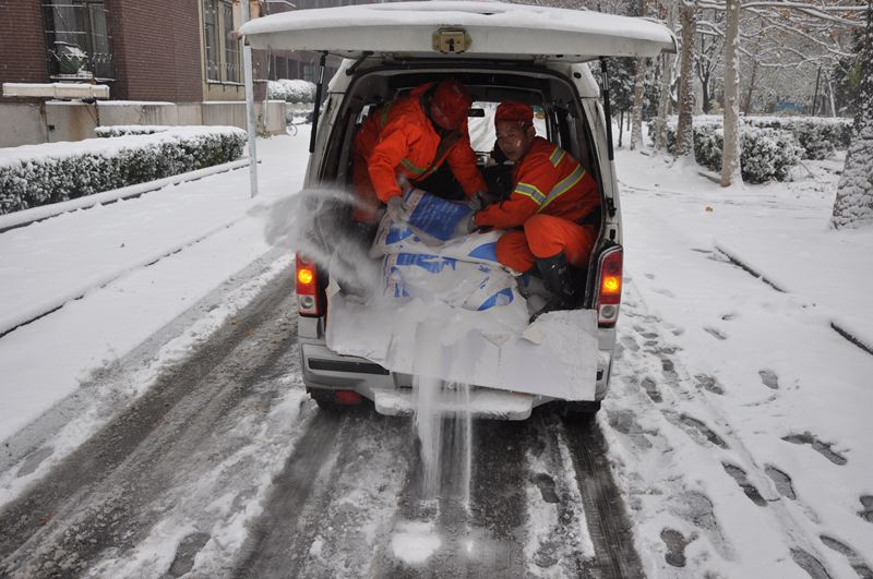 校园环卫科负责人耿福建说,由于此次降雪持续时间长、降雪量较大,风会不时地将树上和屋顶上的积雪吹落在地面,这对清雪工作会造成很大的困难,为防止路面结冰,环卫科晚间对校园内的道路进行了撒盐,以保证周一早上能够让全校师生方便、安全的出行。