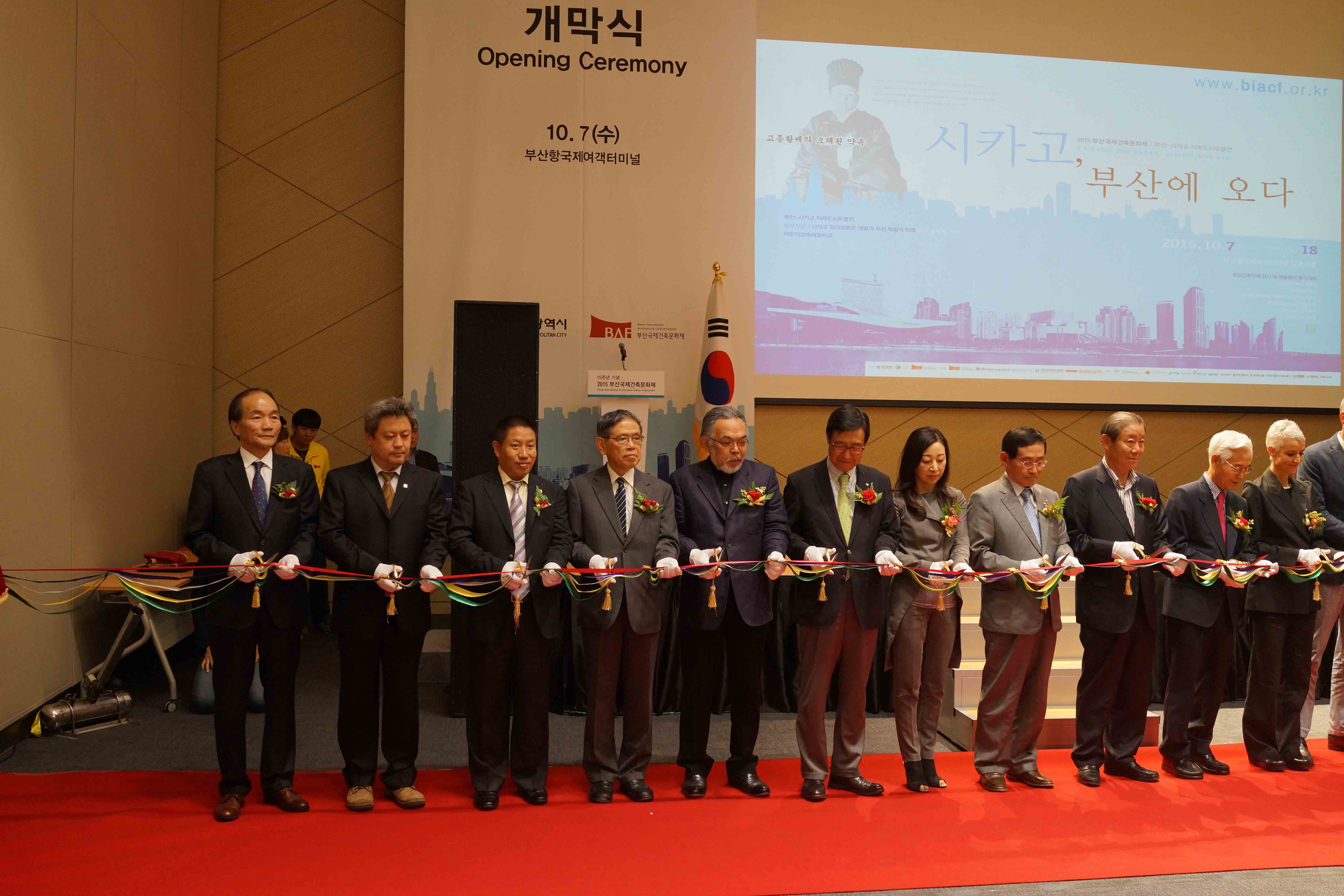 7日下午,洪再生应釜山市市长邀请代表天津建筑学会参加了隆重而又富有新意的釜山文化节开幕式,参观了釜山建筑文化节的系列展览,并出席了釜山市政府举办的文化节欢迎晚宴。