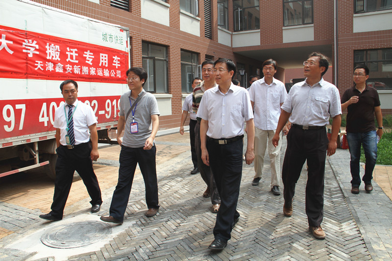 本站讯(通讯员 李厉)8月10日,校长李家俊到北洋园校区视察搬迁工作。副校长、新校区办公室主任刘东志,党委副书记李义丹一同察看,新校区办公室、后勤保障部、学工部、图书馆有关负责同志在现场陪同并介绍了具体情况。