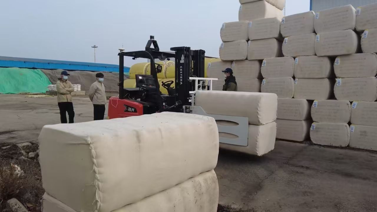 据悉,兵团第八师作为全国重要的优质棉生产基地,棉花种植面积占全国的1/12,总产量占全国的1/10。每年到了棉花收获的季节,棉花的采摘运输就成了难题,需要大量的劳动力。为了解决新疆棉花产业的实际问题,天津大学机械工程学院副教授宋康,带领陈云、贾岚博、刘志强、张连会等同学,将他们在校内无人驾驶试验场调试的无人驾驶夹抱车带到了新疆。在轧花厂,经过长达一个多月的调试部署,终于实现了全流程的自动化和智能化棉包搬运、码放作业,大幅提升了棉花运送和出入库的效率。