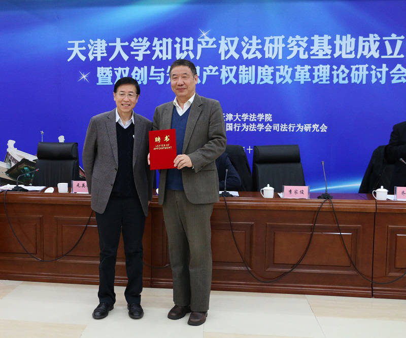 本站讯(通讯员 俞风雷)12月20日,由天津大学法学院主办的天津大学知识产权法研究基地成立大会暨“双创”与知识产权制度改革理论研讨会在卫津路校区成功举办。