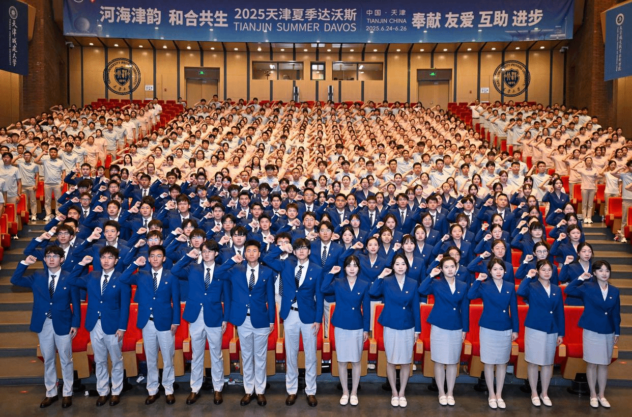 6月21日,第十六届新领军者年会(2025天津夏季达沃斯论坛)青年志愿者上岗动员会在天津大学北洋园校区求实会堂举办。市委常委、河西区委书记王旭出席活动并讲话。副市长李文海出席活动并为青年志愿服务队授旗。