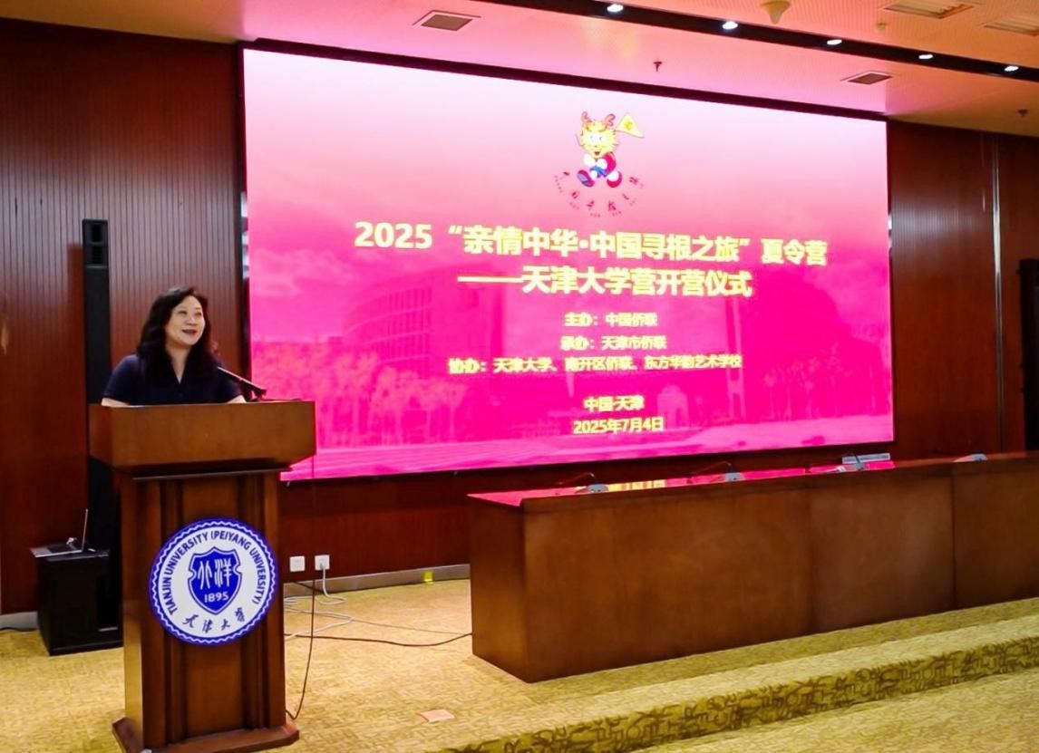 7月4日,“亲情中华·中国寻根之旅”夏令营天津大学营在天津大学北洋园校区举行开营仪式。天津市侨联副主席杨昆,天津大学国际教育学院院长李锵,党委书记金旋,市侨联常委、南开区侨联主席宋东,市侨联委员叶武等出席。天津大学党委统战部,国际教育学院相关负责同志、任课教师代表和全体领队、营员参加。开营仪式由金旋主持。