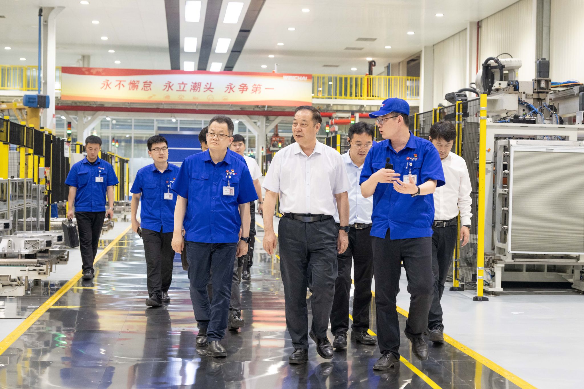 随后,杨贤金一行在山东重工集团党委委员、副总经理,潍柴集团党委书记、董事长、总经理马常海陪同下,前往潍坊参观了潍柴科技展馆、二号工厂、产品试验中心,并与在潍柴集团工作的校友代表座谈交流。杨贤金详细询问校友们在企业工作情况,勉励校友们要牢记母校“实事求是”的校训,充分借助企业提供的广阔舞台,努力拼搏,在大有可为的时代做到大有作为,同时发挥好桥梁作用,助力母校与企业的深度合作。