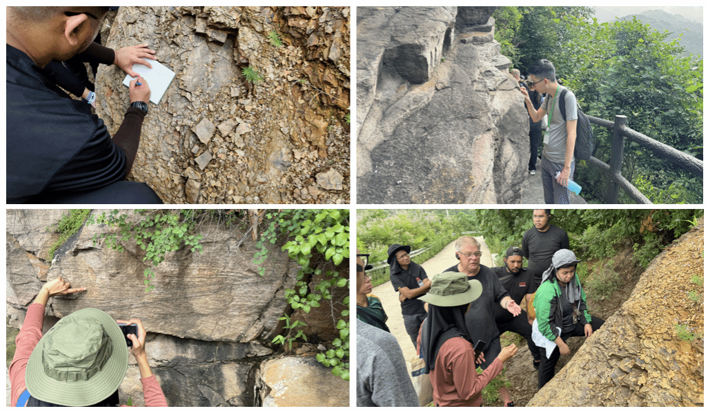 7月3日至4日,马来亚大学师生前往天津蓟州区开展了为期2天的野外地质考察。在中上元古界国家自然保护区,学员们实地观察了距今约18亿年的元古代地层剖面,并采集典型岩石样本进行分析。