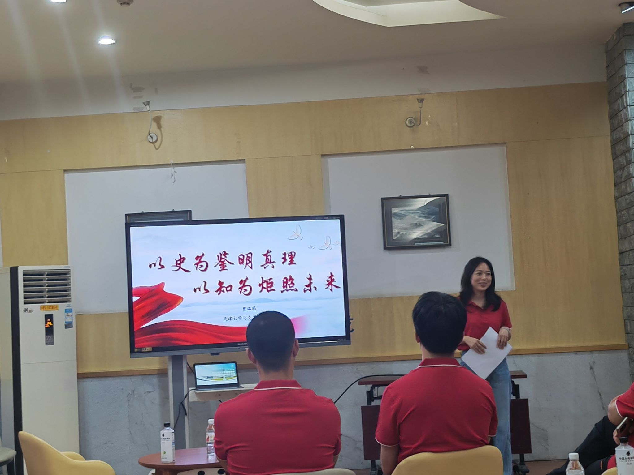 实践营的首次集体活动于7月6日傍晚在西北工业大学友谊校区红叶苑会议室拉开序幕,校工会挂职副主席刘楠与卫生应急学院青年教师李佳蒙带领全体营员共同学唱校歌,在厚重纯朴的旋律中重温巍巍学府兴学强国的初心,凝聚起北洋和天大的精神纽带。大家共同观看了纪念建校120周年时拍摄的纪录片《大学之道·西北传承》,通过影像了解了抗战时期的高校内迁史,回顾了北洋师生在国立西北工学院时期传播教育火种、践行兴学强国使用的事迹。马克思主义学院青年教师贾璐萌以《以史为鉴明真理,以知为炬照未来》为题讲授了专题党课,深入分析了中国共产党如何在唯物史观指导下争取世界反法西斯战争胜利的历史进程及留给后人的思考。近4个小时的活动紧凑而充实,既充满了团队集结的仪式感,也让营员们对此次西行实践的意义有了更深刻的认知。